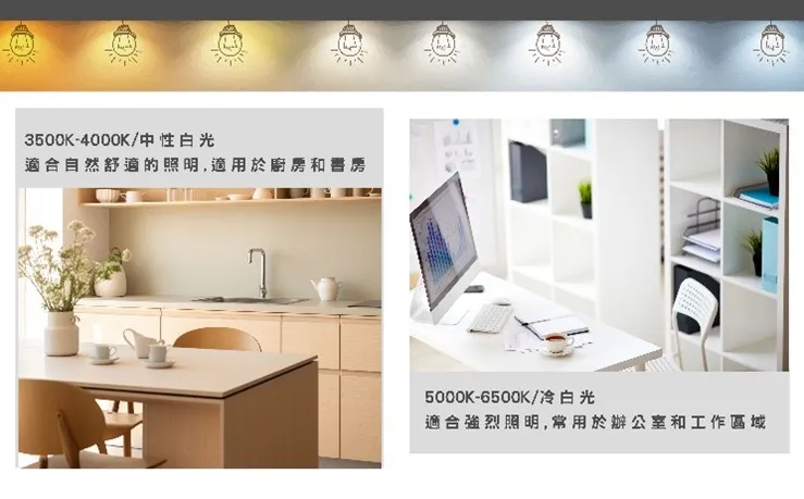 色溫是衡量光源顏色的單位,通常(K)表示。色溫越低,光線越偏黃暖,色溫越高,光線越偏藍冷。