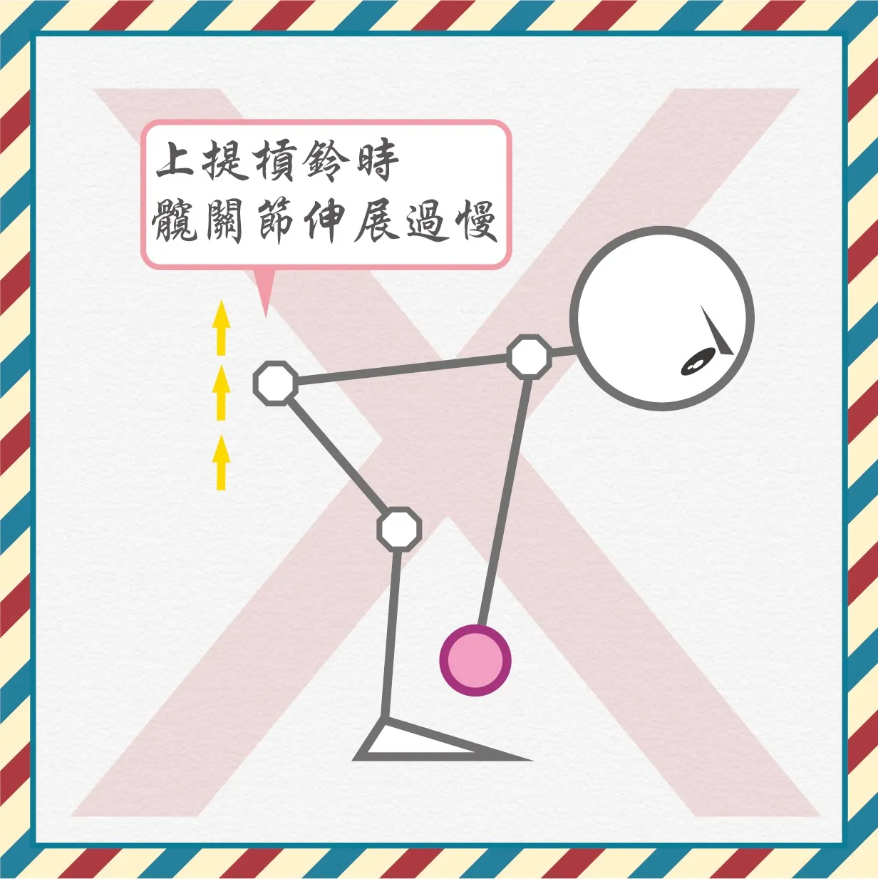2. 上提槓鈴時髖關節伸展過慢,與膝關節伸展配合不佳,容易讓下背承受過多的壓力。