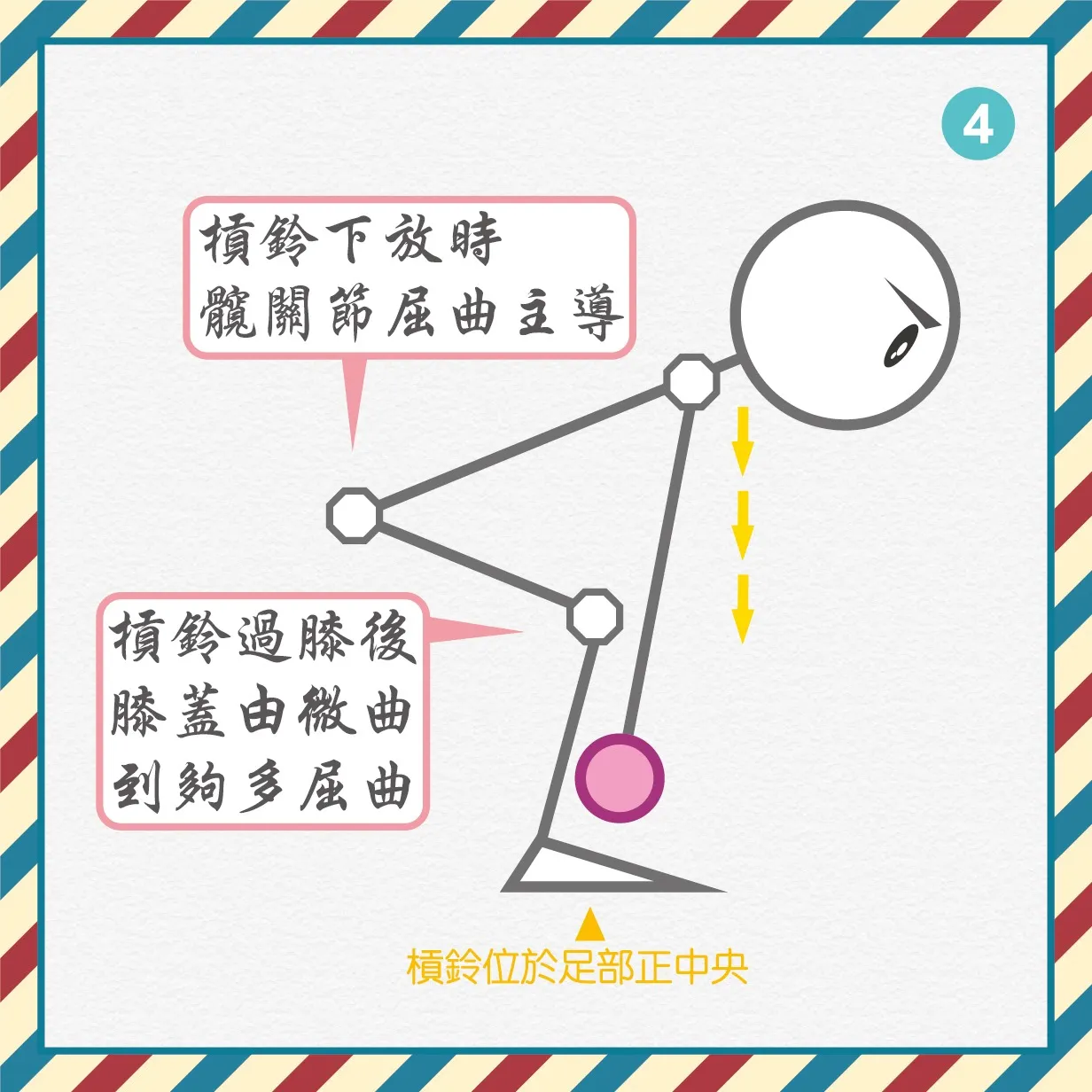 4. 槓鈴放下時,由髖關節屈曲主導,直到槓鈴位置低於膝蓋,膝關節由微曲到更多屈曲。