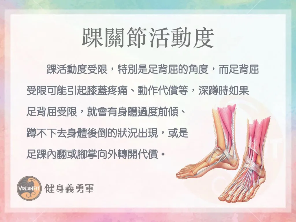 其中的原因可能是因為「踝關節背屈活動度」不足喔!