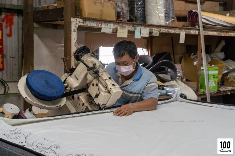 只見師傅熟絡地走位,沒三兩下便完成了床墊表布與舒適層之間的包縫,手腳非常俐落,我在旁邊都看到目瞪口呆!
