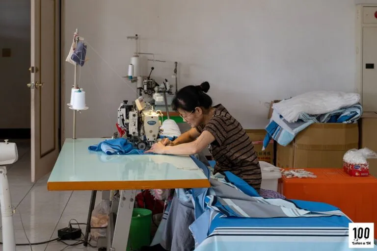 這裡可以看到阿姨們正在製作鋪襯在被面和被裡之間的「被胎」,想不到平常蓋的棉被背後竟然有這麼多學問呢!