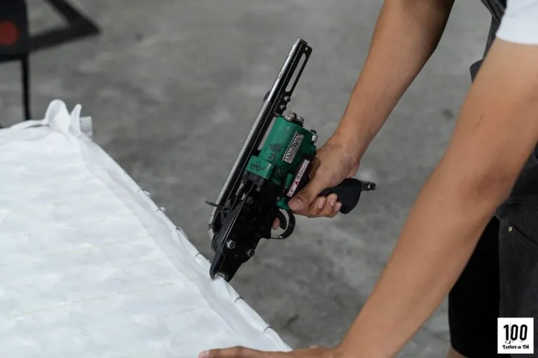 獨立筒邊緣容易塌陷,所以需要經過釘槍打釘,才能讓床邊具備足夠支撐力。