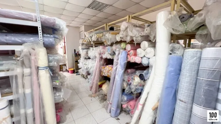 接著我們來到另外一個工作區,這裡主要負責生產各式床包、床單、枕頭,入口處琳瑯滿目的布樣,讓人看得目不暇給!