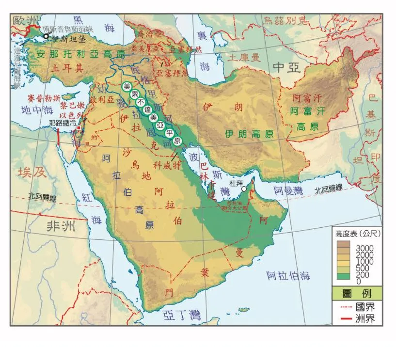 地理特徵:: 該平原得名於橫貫其中的底格里斯河和幼發拉底河,意為「兩河之間」的土地。