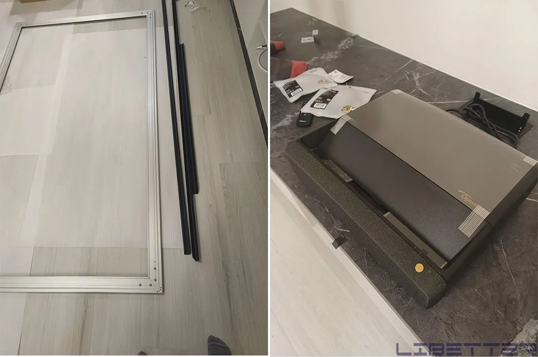 林口施工:OPTOMA L1+ 4K & 100吋 和詮HBSI 黑柵抗光幕 最便宜的4K超短焦歡迎來看效果!