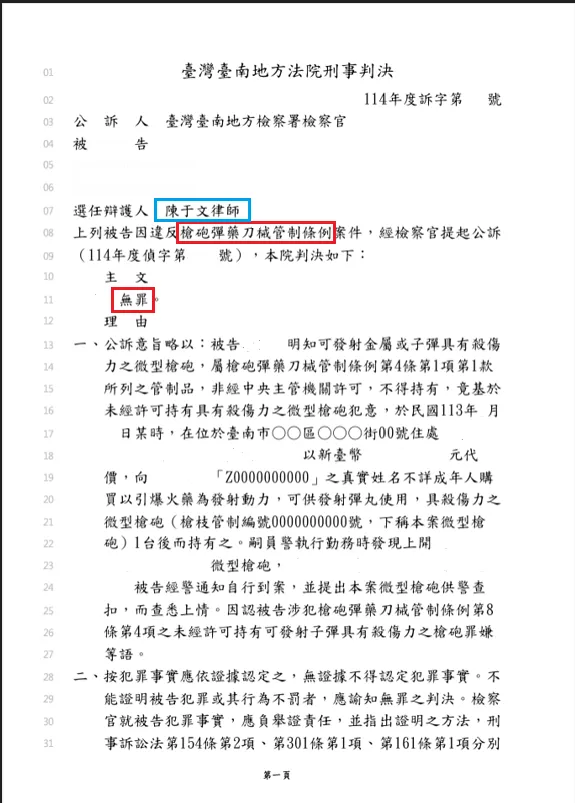 【判決實例:槍砲彈藥刀械管制條例|非法持有槍砲】