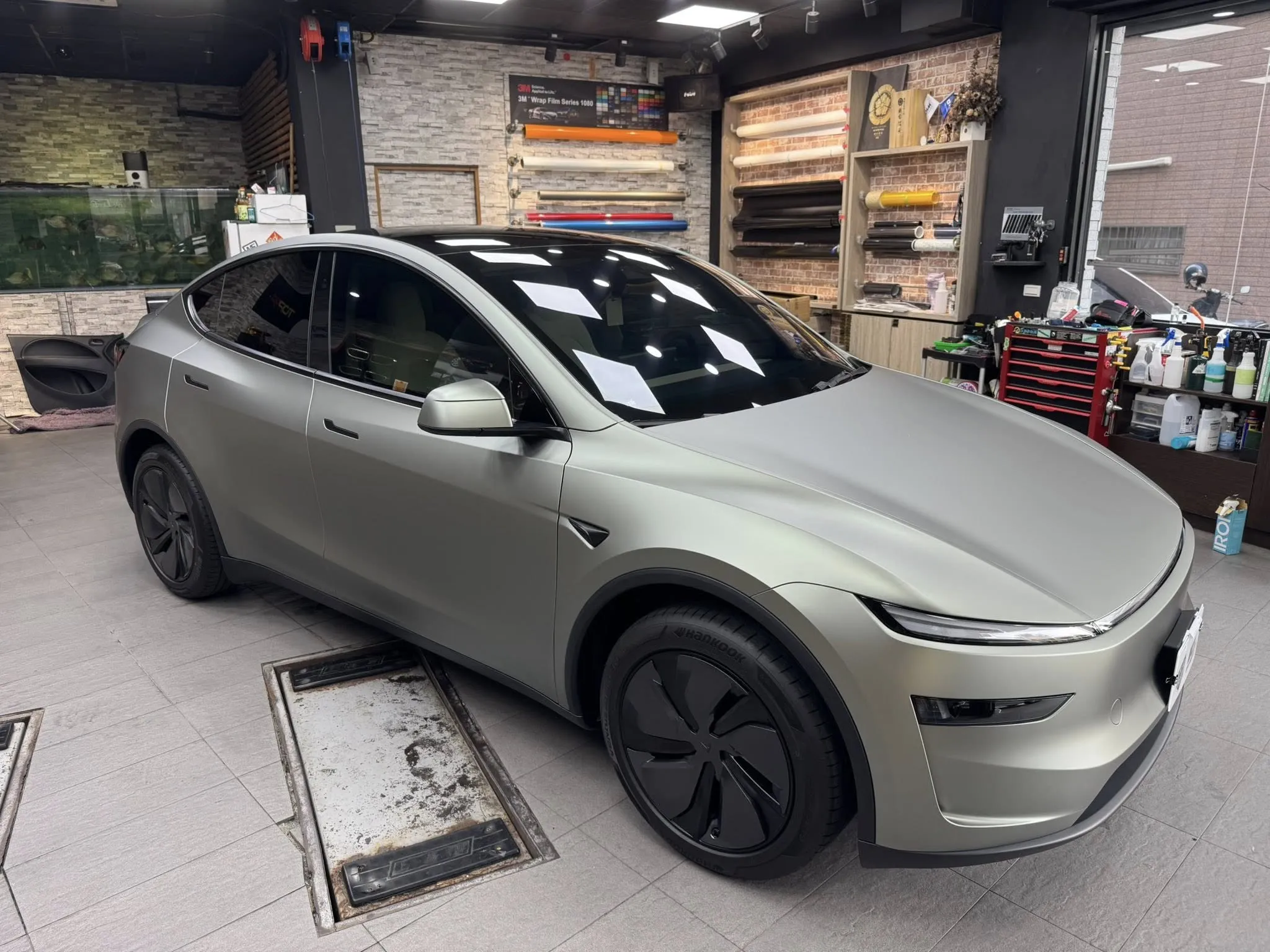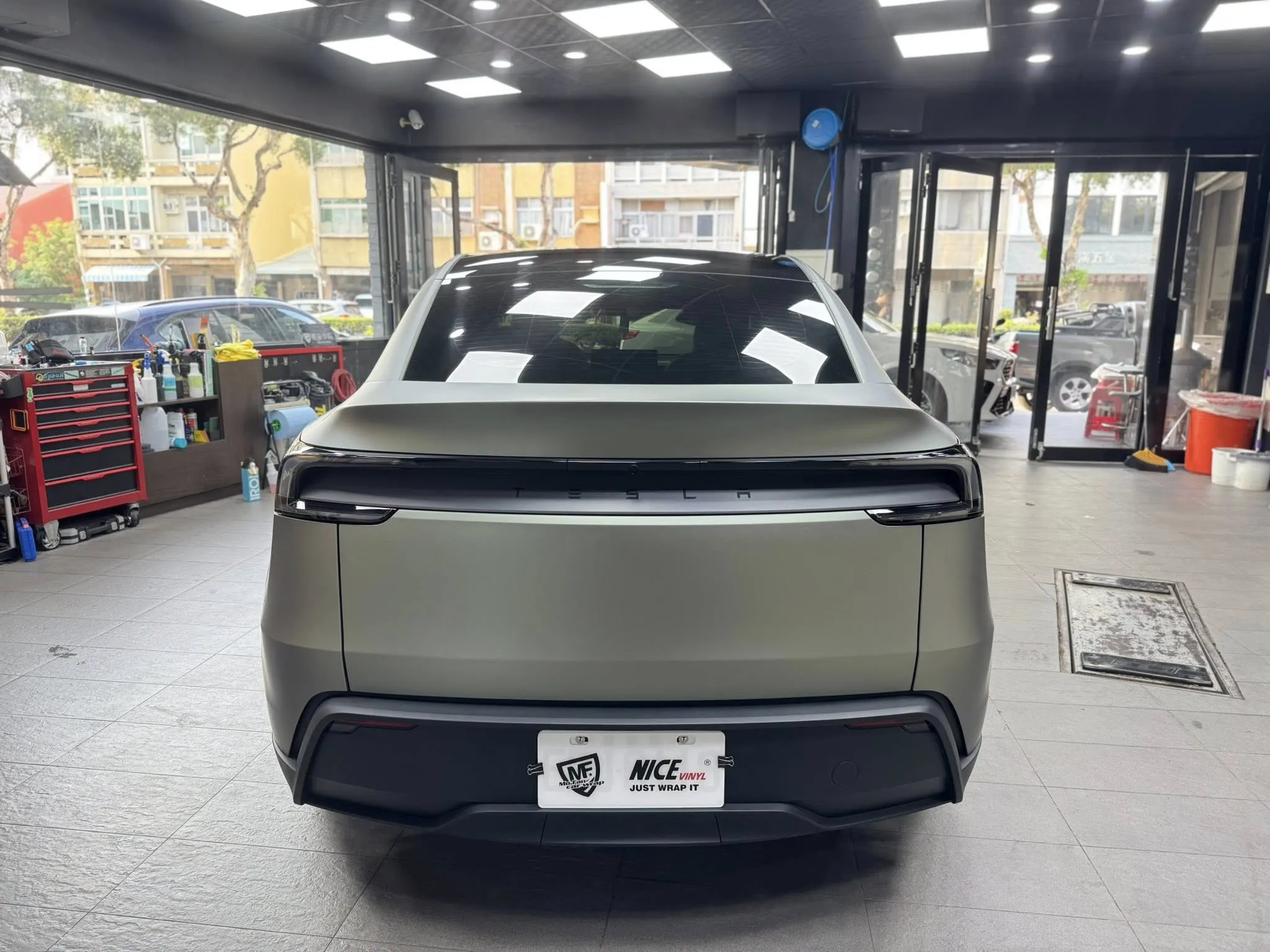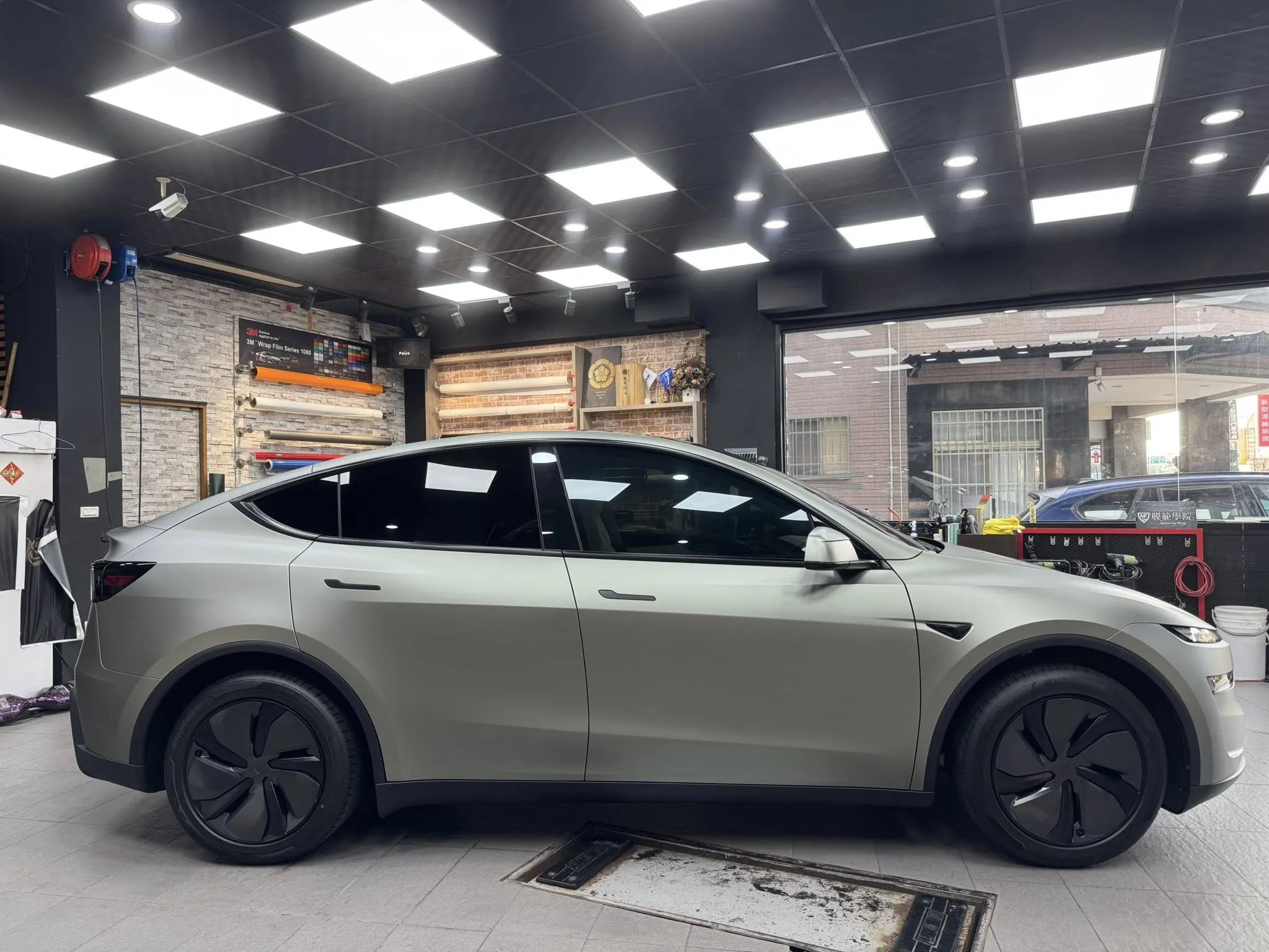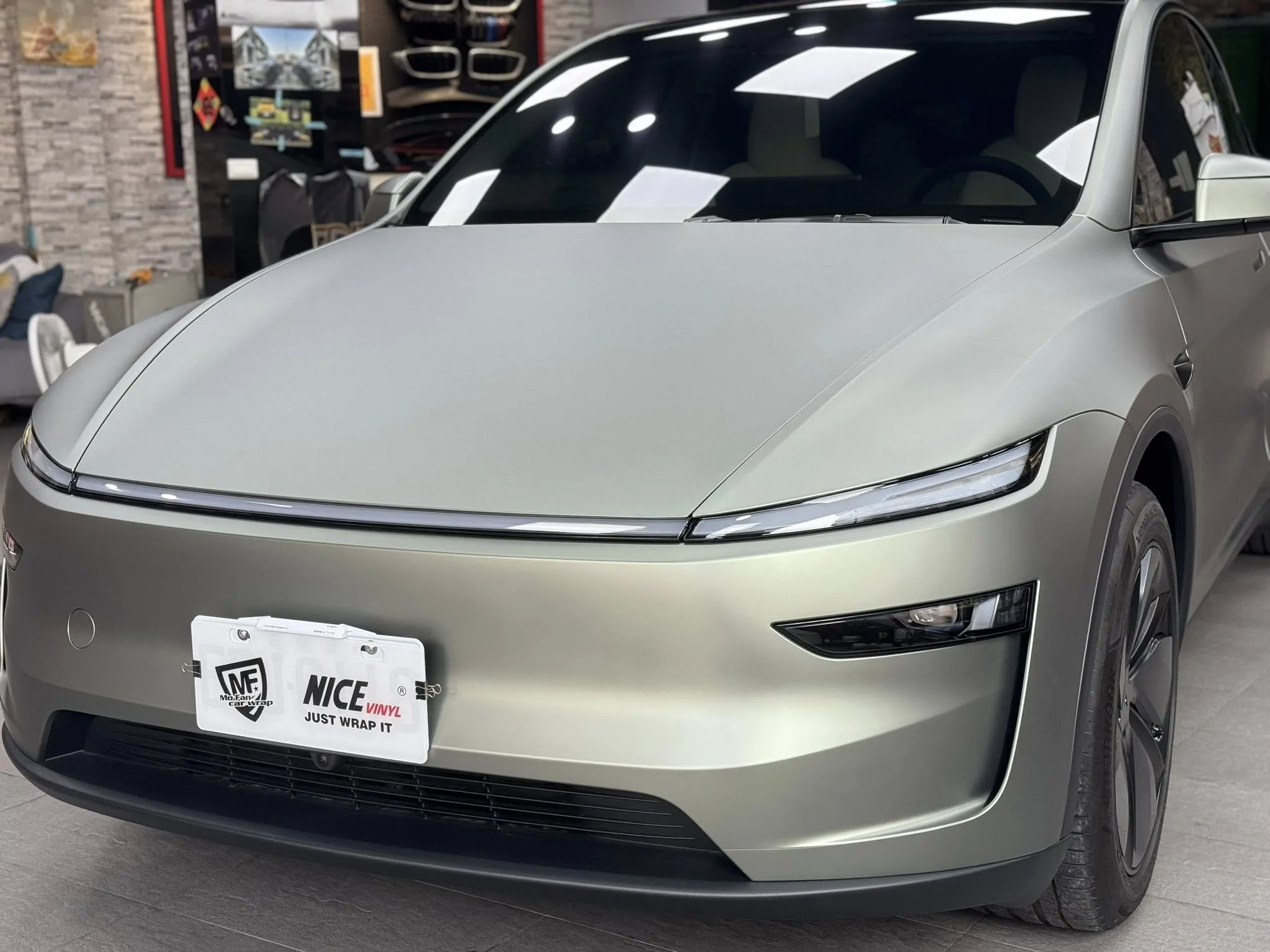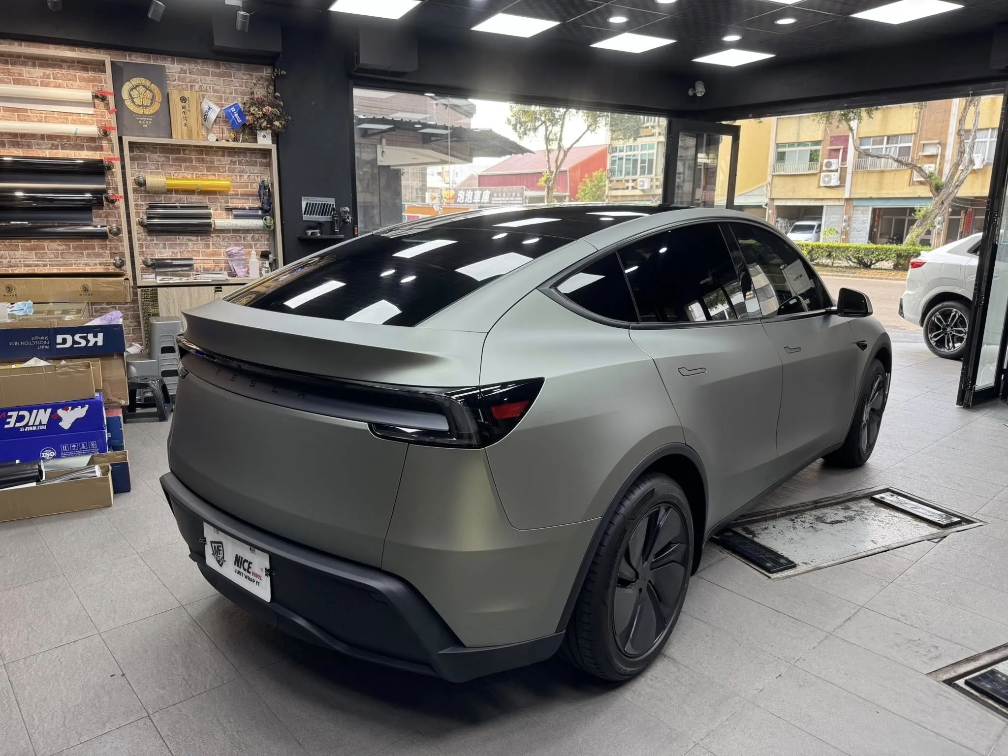Tesla model y 全車改色 幽靈卡其灰