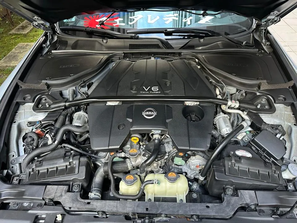 Nissan Z搭載的動力來源為VR30DDTT的3.0L V6雙渦輪增壓引擎,最大馬力可達400hp/6400rpm、最大扭力也有48kgm/1600-5600rpm的表現,整體戰力不俗,車主也換上HKS SQV進氣洩壓閥來彰顯性能氣息。