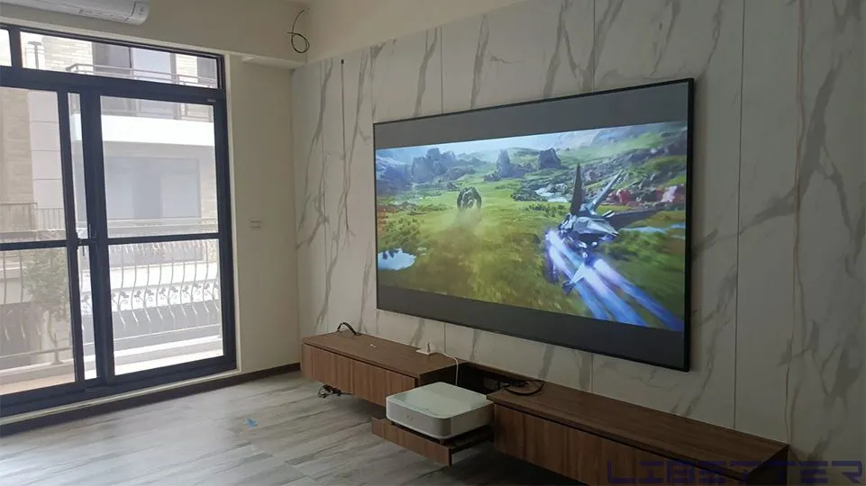 楊梅施工:EH-LS300W 搭配 100吋最新黑柵抗光幕 15公分即可投80吋大畫面!