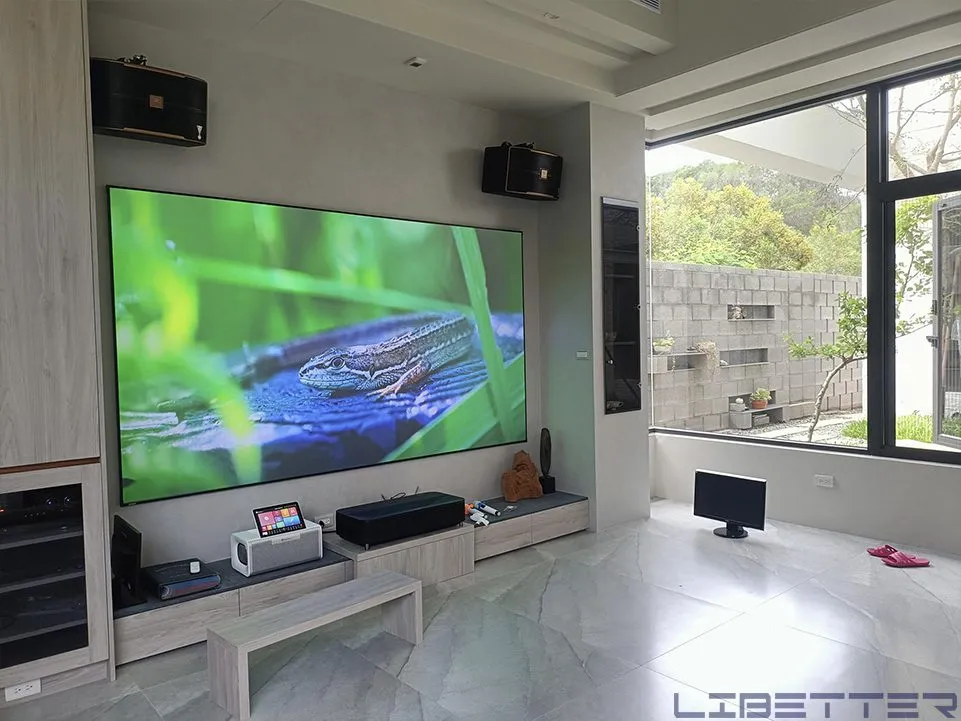 家庭影音規劃:LG HU715Qw 超短焦+120吋電動黑柵抗光幕+Klipsch R-600F 落地型 & Klipsch R-50C 中置 還在考慮的朋友們可以參考實體圖哦!