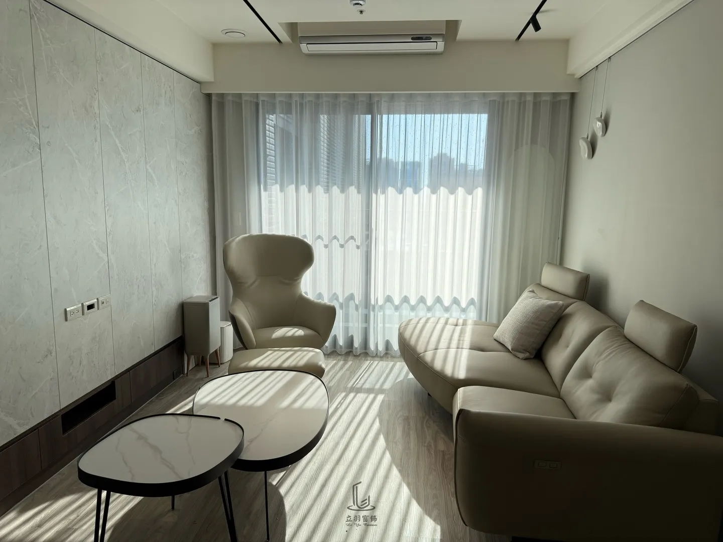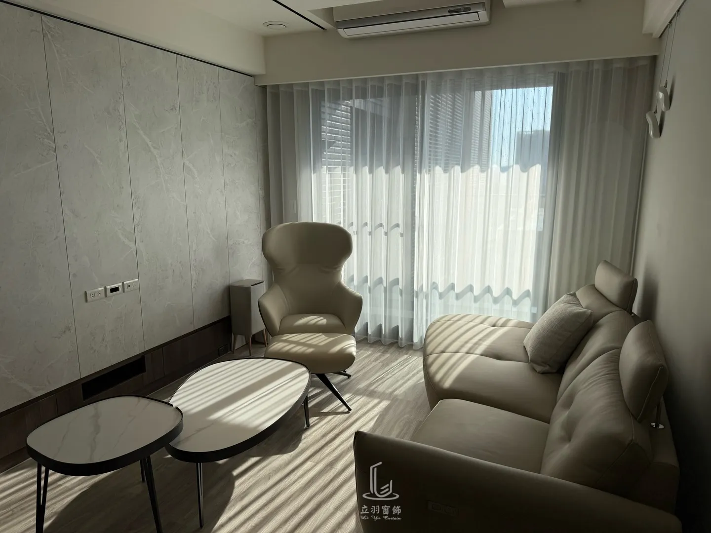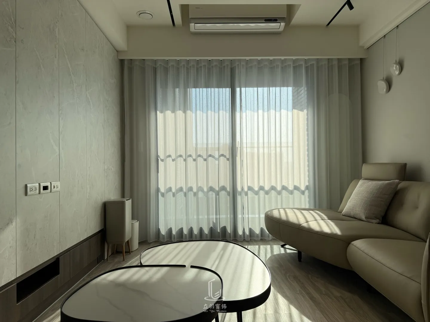 ◼ 客廳單層蛇紗|捨棄傳統雙層布紗做 保留室內最佳採光與空間感