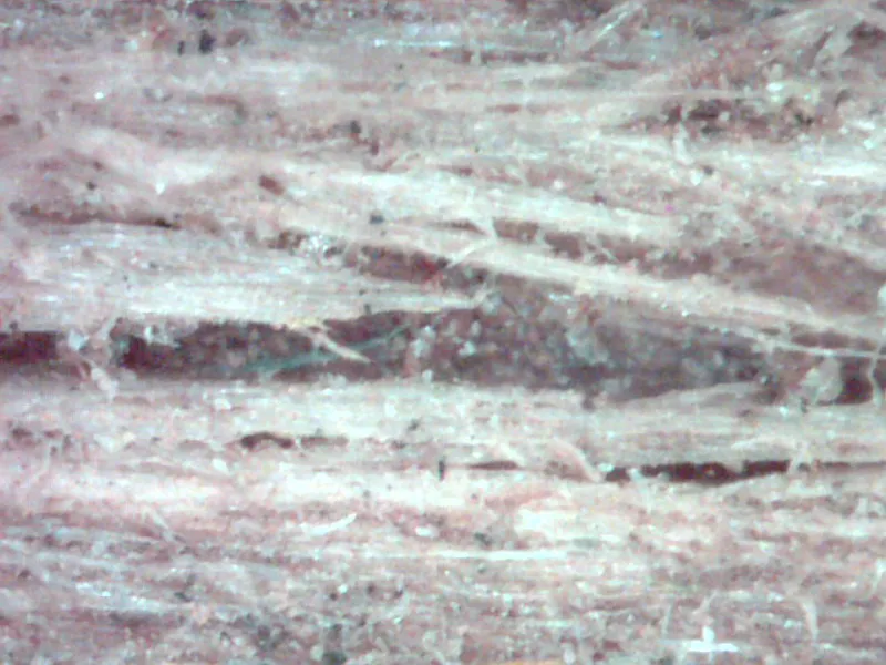 細緻纖維幾乎都被沉油包覆,保護纖維不過水...