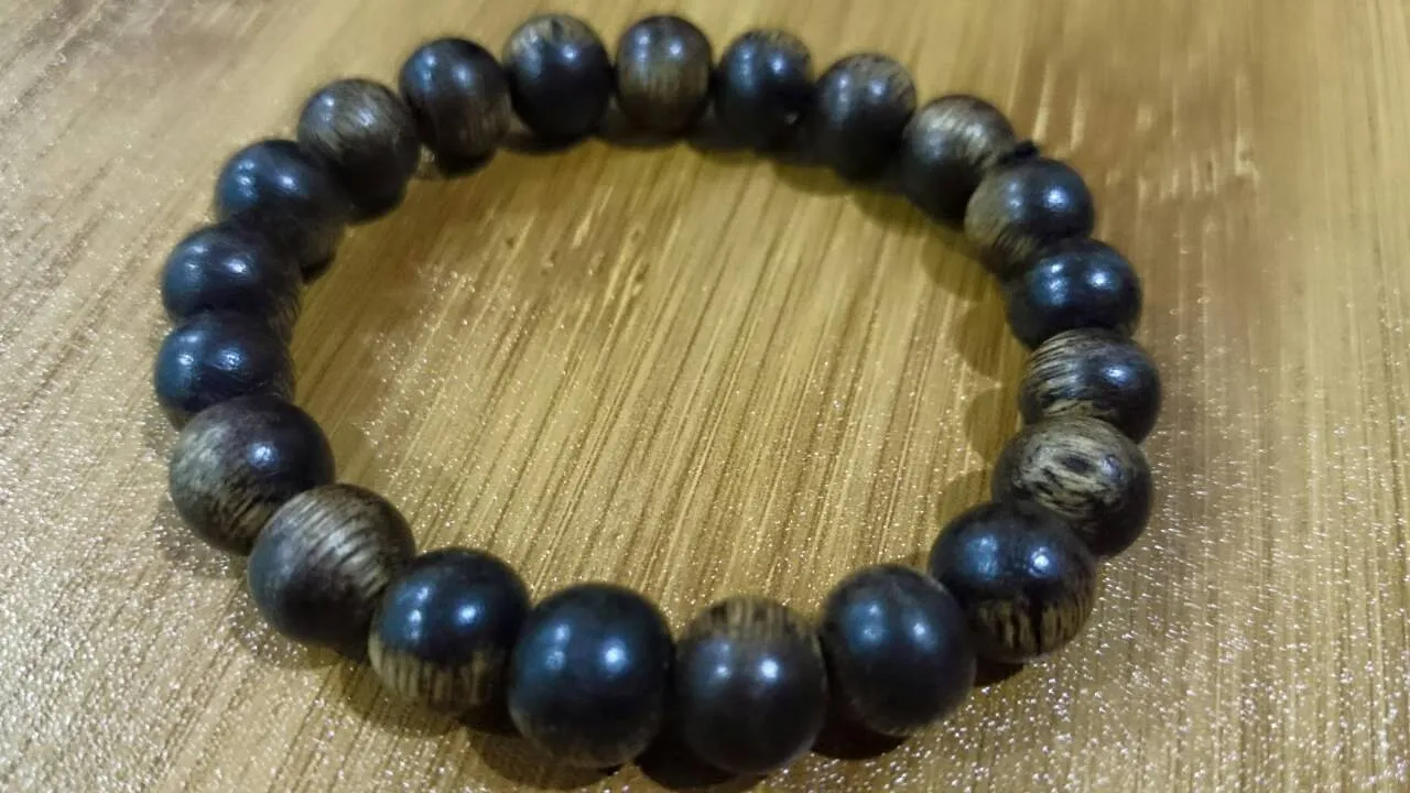 上方沉香手珠黑的是巴布亞水沉浮4A,紅的是Jayapula 下方是假沉香,外表與礦化沉香相當類似.