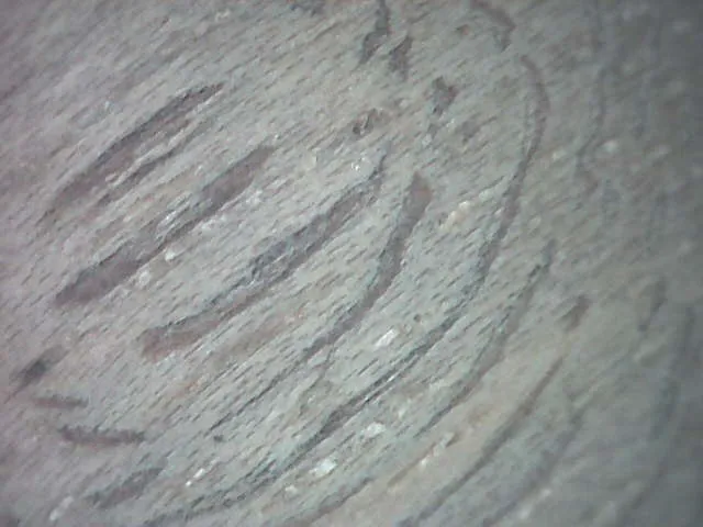 柬埔寨老沉香特選一顆外觀看起來較白的. 放大50倍 200倍有看到白白纖維中一段一段橘紅色的油脂嗎?