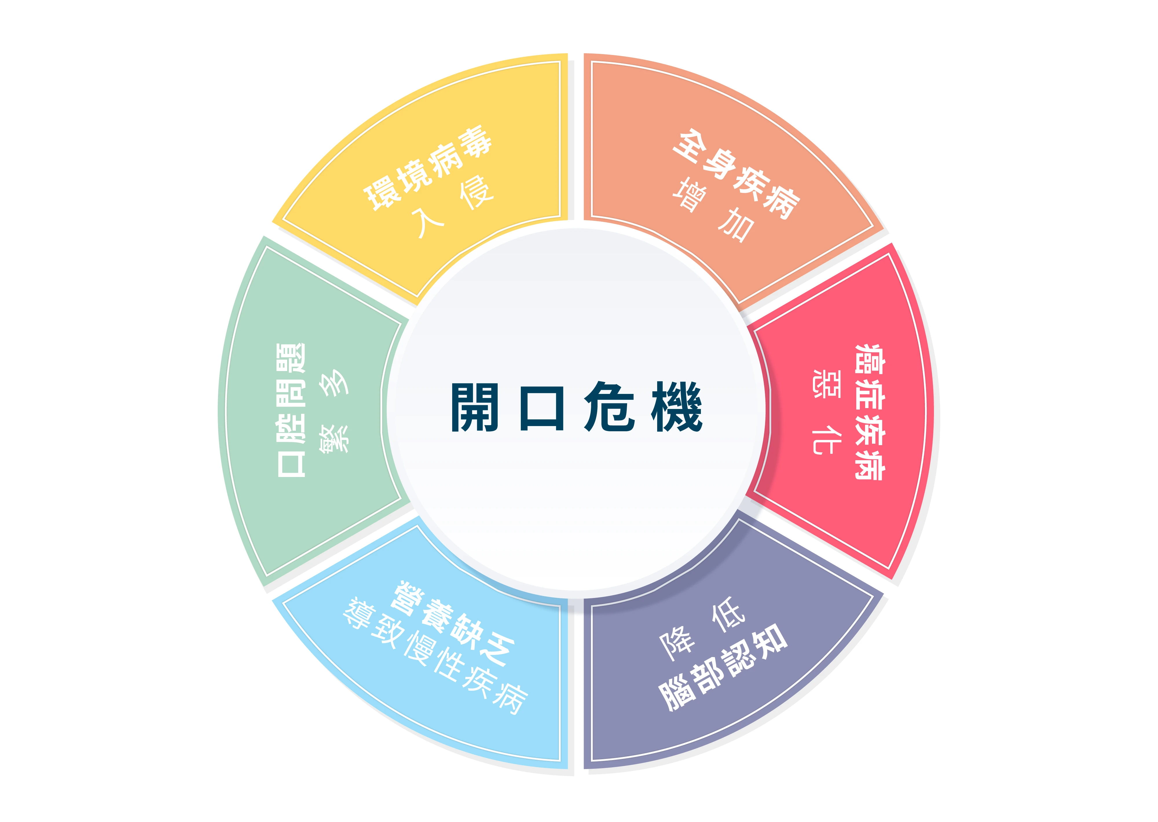 - 慢性疾病:口腔微生態失衡,恐導致營養缺乏,糖尿病等慢性疾病產生。