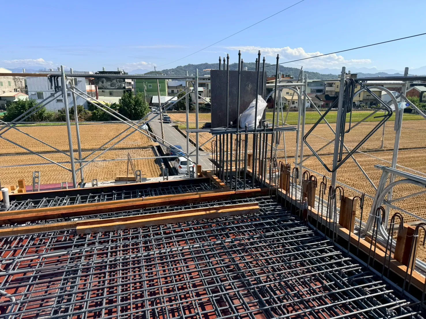 2025.10.15 一樓頂板樑鋼筋綁紮與模板支撐階段