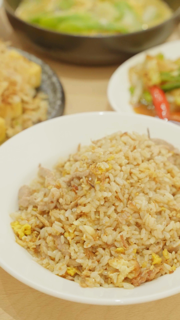 | 金銀蛋時蔬 | 肉絲蛋炒飯 | 扁魚白菜 |