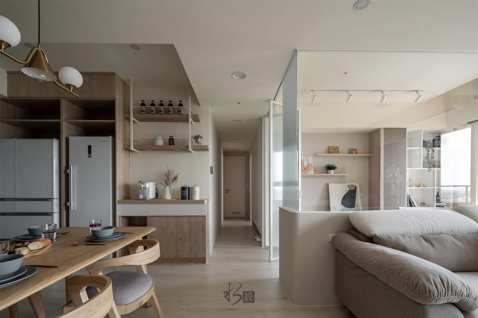 美式質感 質樸之美 室內空間採用美式風格的優雅,柔和的色調、對比鮮明的紋理和光影的舞蹈,散發著寧靜和舒適。開放式設計創造了一個無縫的流程,促進了家庭成員之間的溝通和互動。
