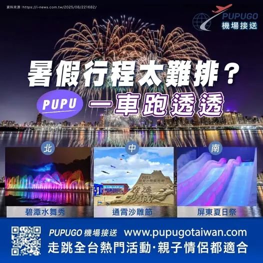直接叫 PUPU 包車接送,想去哪就去哪,暑假一站一站輕鬆打卡!