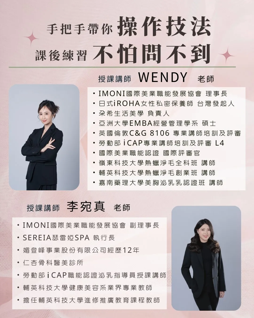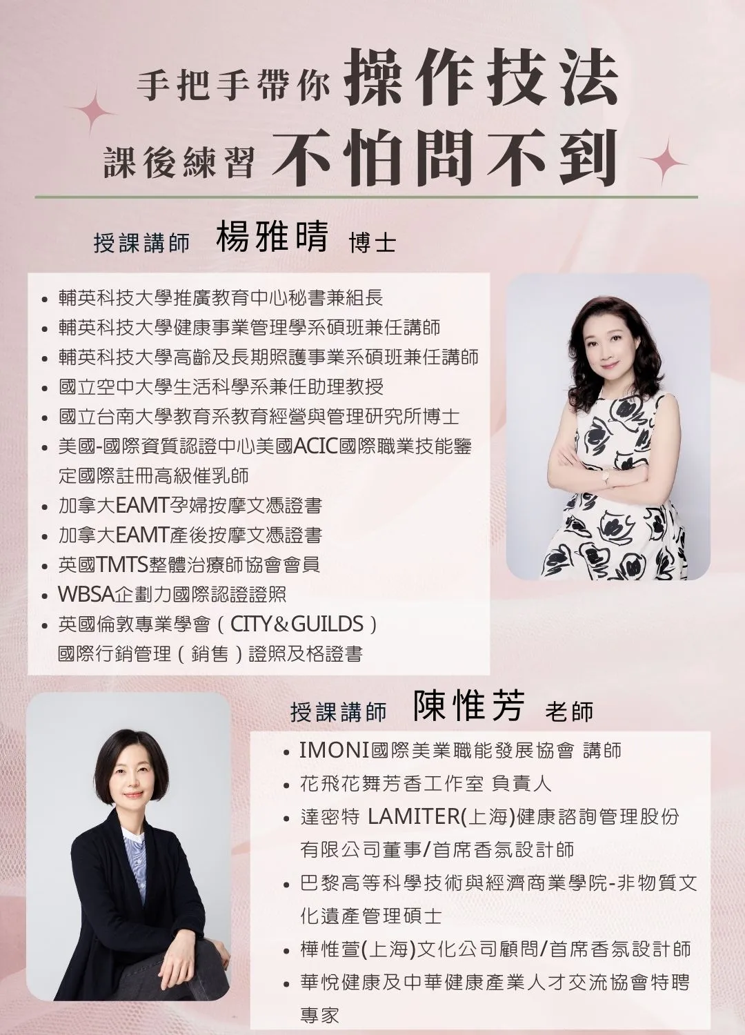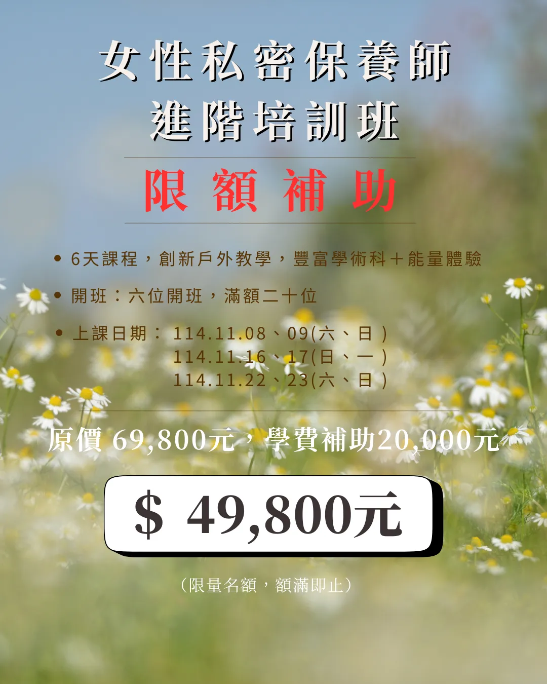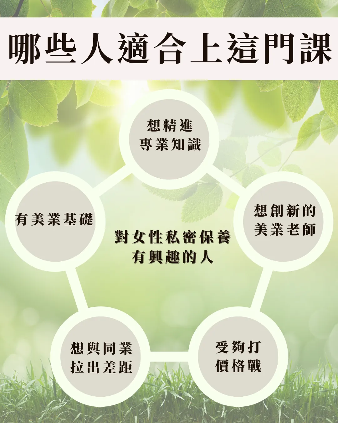 孕婦保養女性私密護理私密處保養臉部清粉刺臉部保養除毛熱蠟除毛泌乳師進修學習