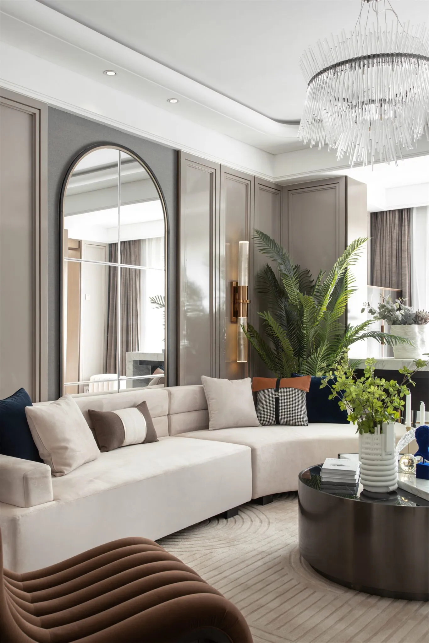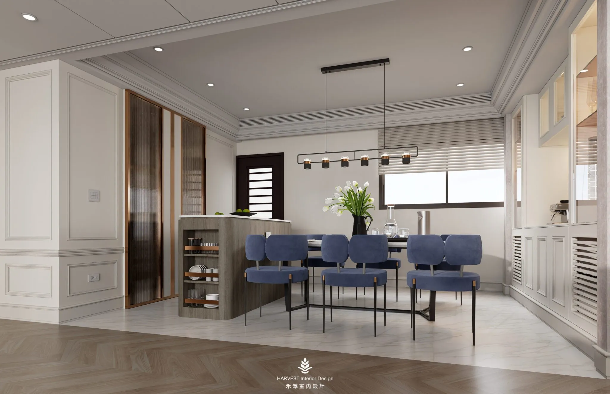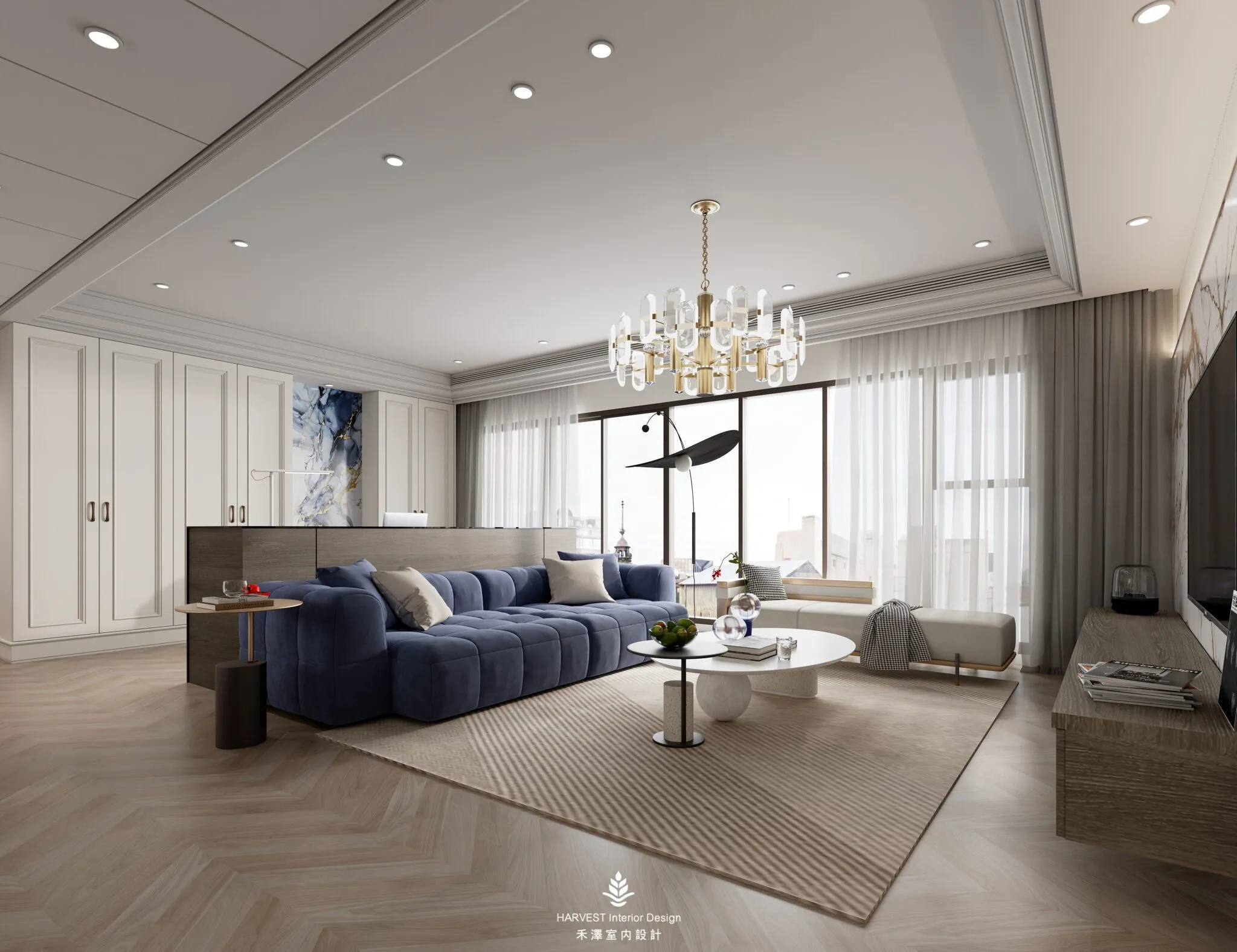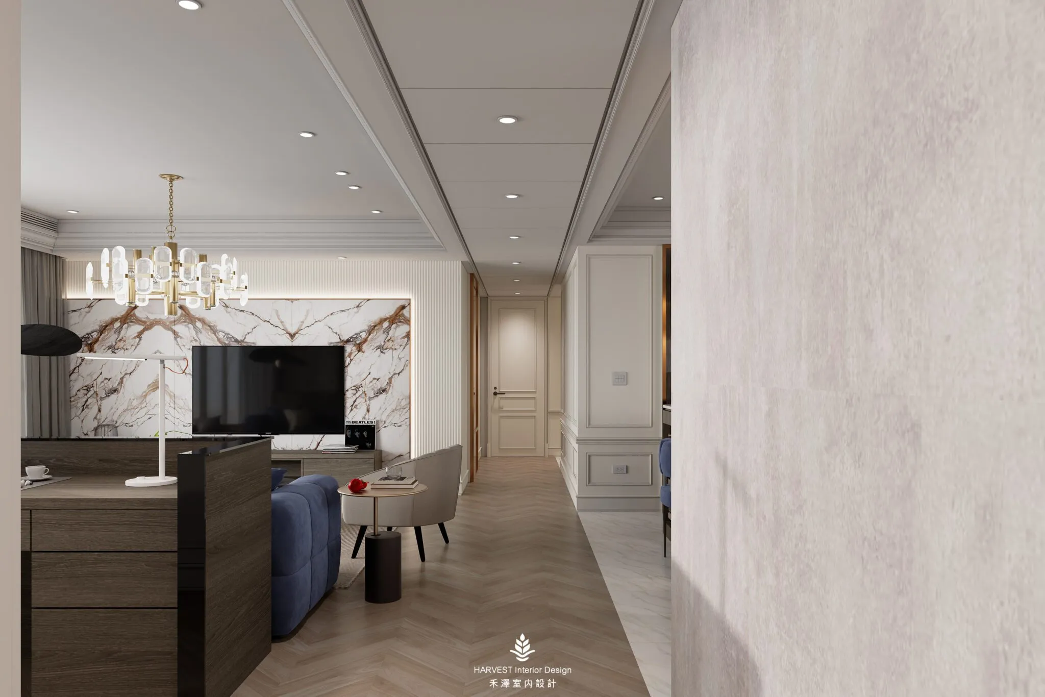 現代簡約的風格帶點美式線板元素進入整體空間,讓客廳多了一份優雅感
