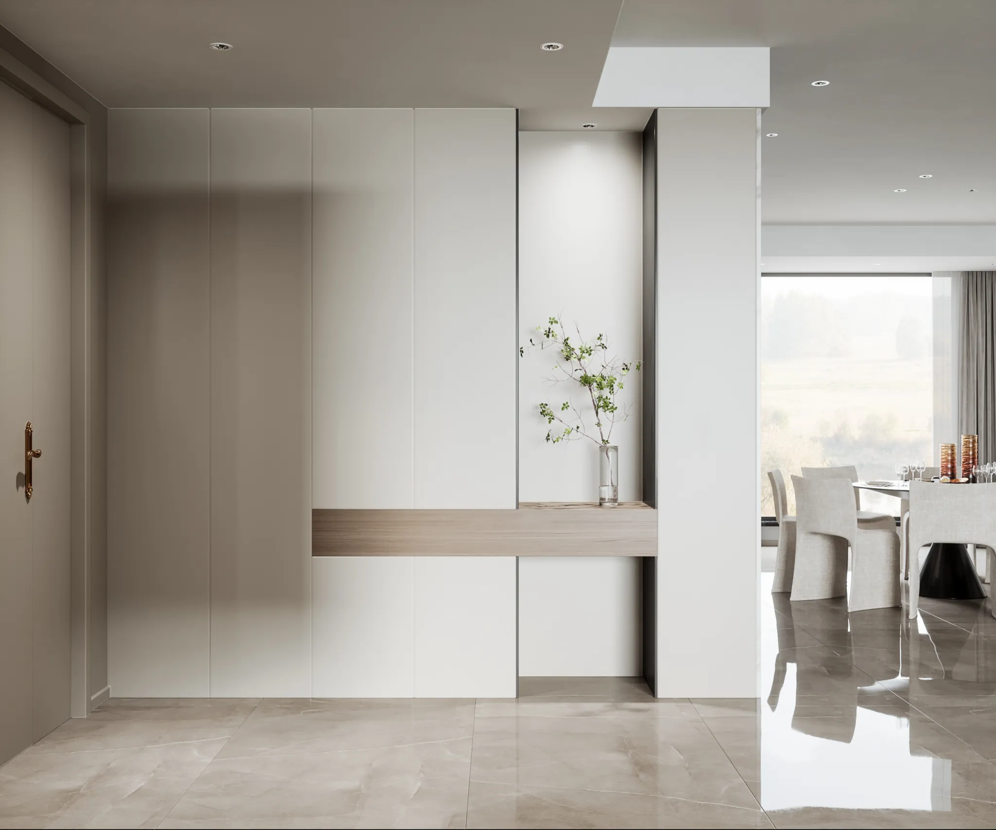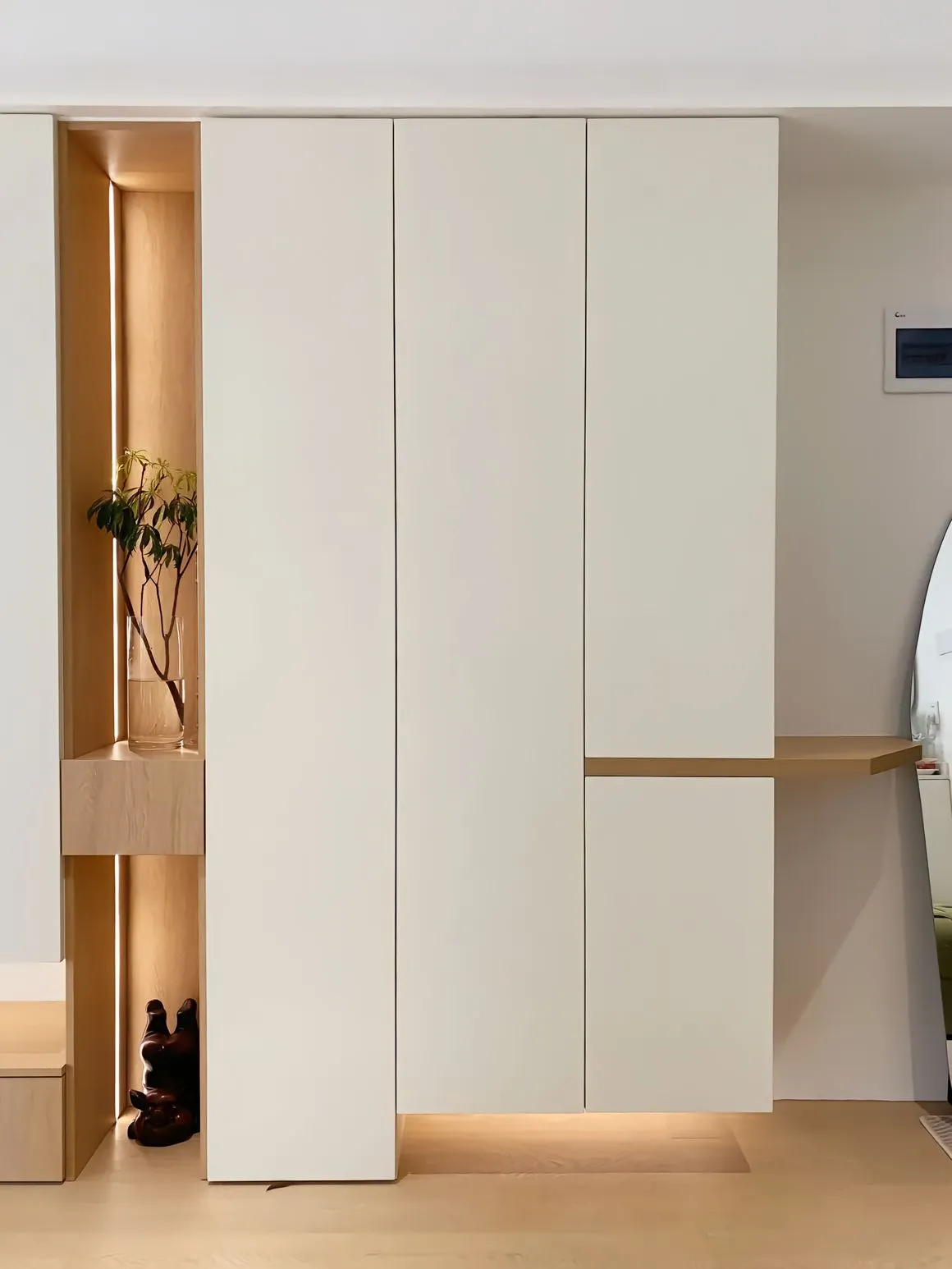 現代簡約小戶型玄關設計,純白與木紋簡約又耐看