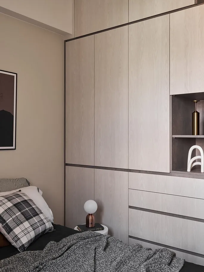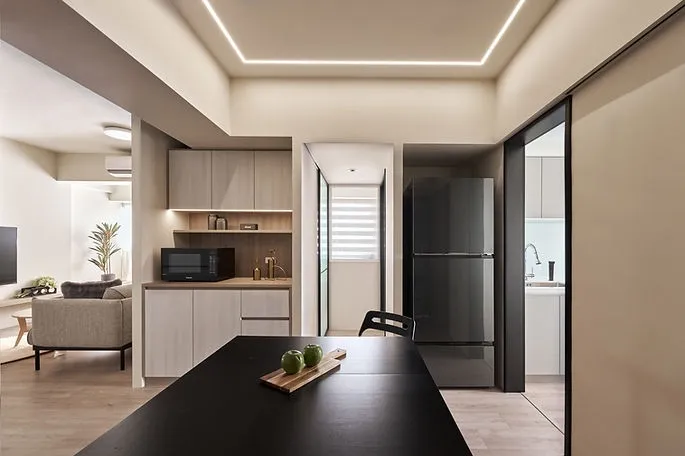 房屋整體使用奶茶色的色調,除了可以使空間看起來更加寬敞外,也讓居家空間更加溫暖舒適。柔和的色彩還能有效反射自然光,讓空間更加明亮。