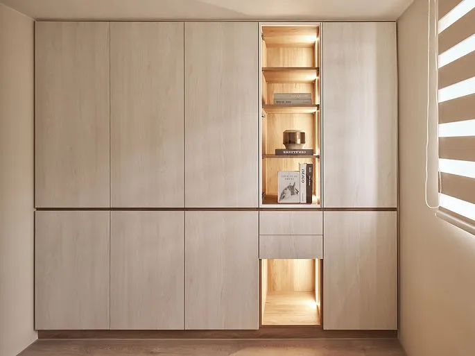周大總監在天花板和櫃子上安裝了燈條,除了能夠提供均勻的光源外,還可以用來強調空間的線條和結構,增強空間的視覺效果。