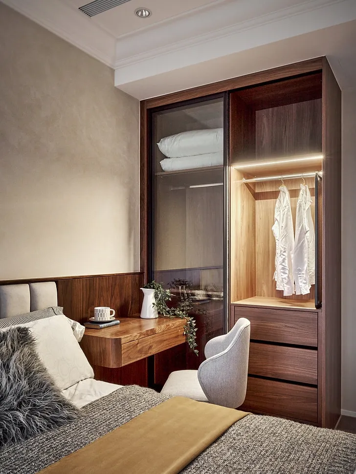 考慮到屋主與家人回台時的居住需求,周大將房屋設計成4房格局,雙主臥、次臥與客房的設計,不僅讓房間更加寬敞,也滿足了家庭成員的居住需求。