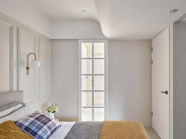 主臥室是夫妻倆能身心放鬆的休息空間,弧形的天花板,讓房間增添柔和舒適的氛圍。