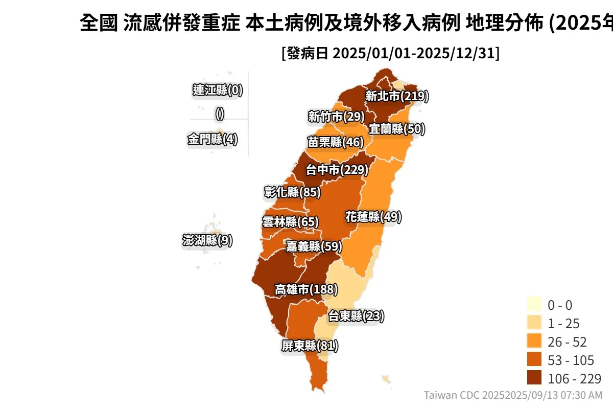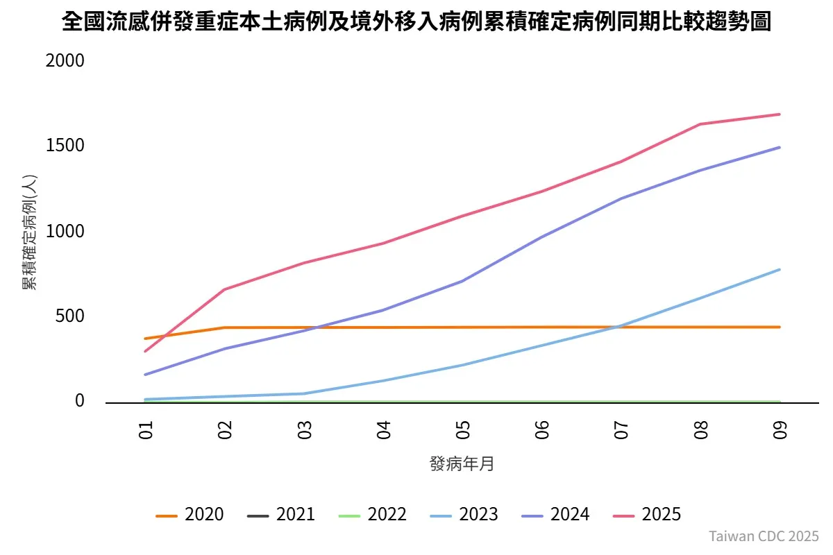 3. 截至2025年9月,流感重症累積病例數較去年同期有所上升。