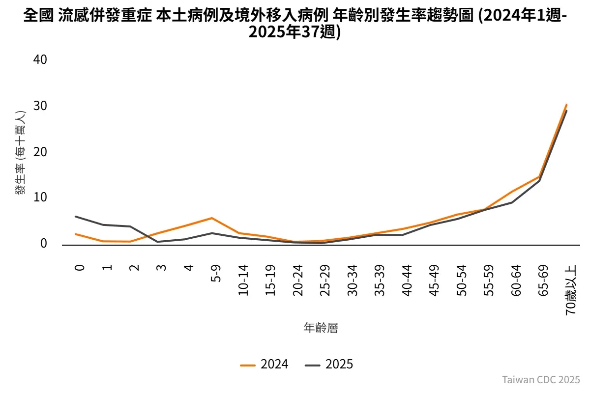 4. 長者與幼兒仍是流感重症的高風險族群,且2025年截至目前的發生率較去年同期略有上升。