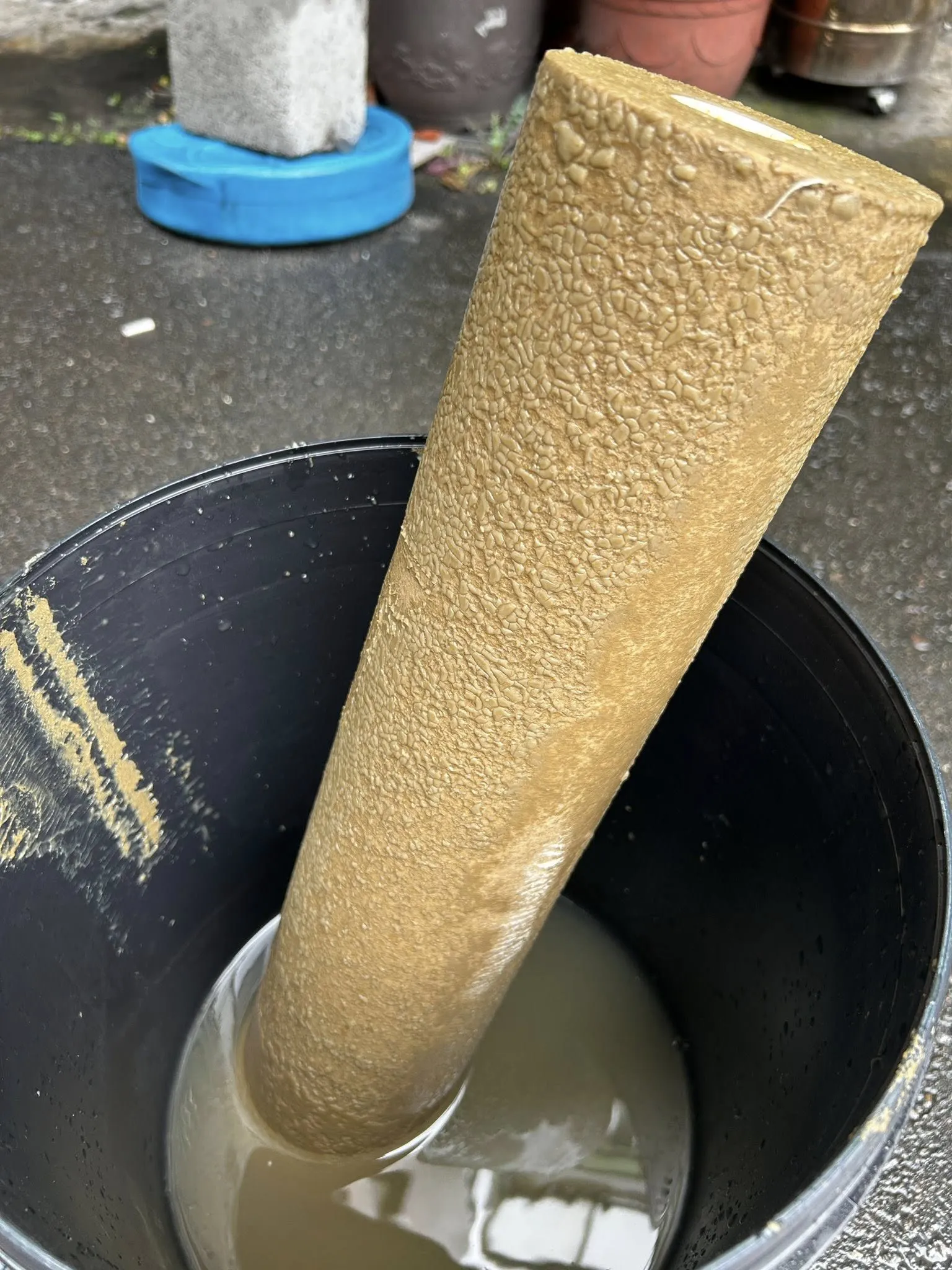 - 原理:壓縮空氣與水輪流衝擊,物理性剝離
