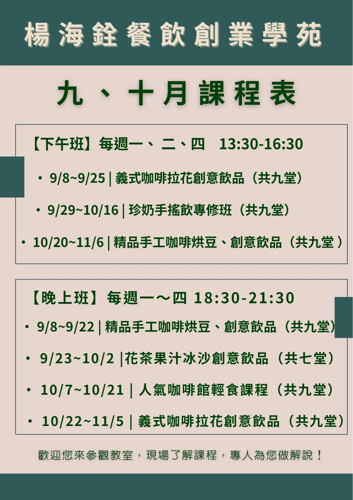 2025年9-10月專業飲品輕食課程