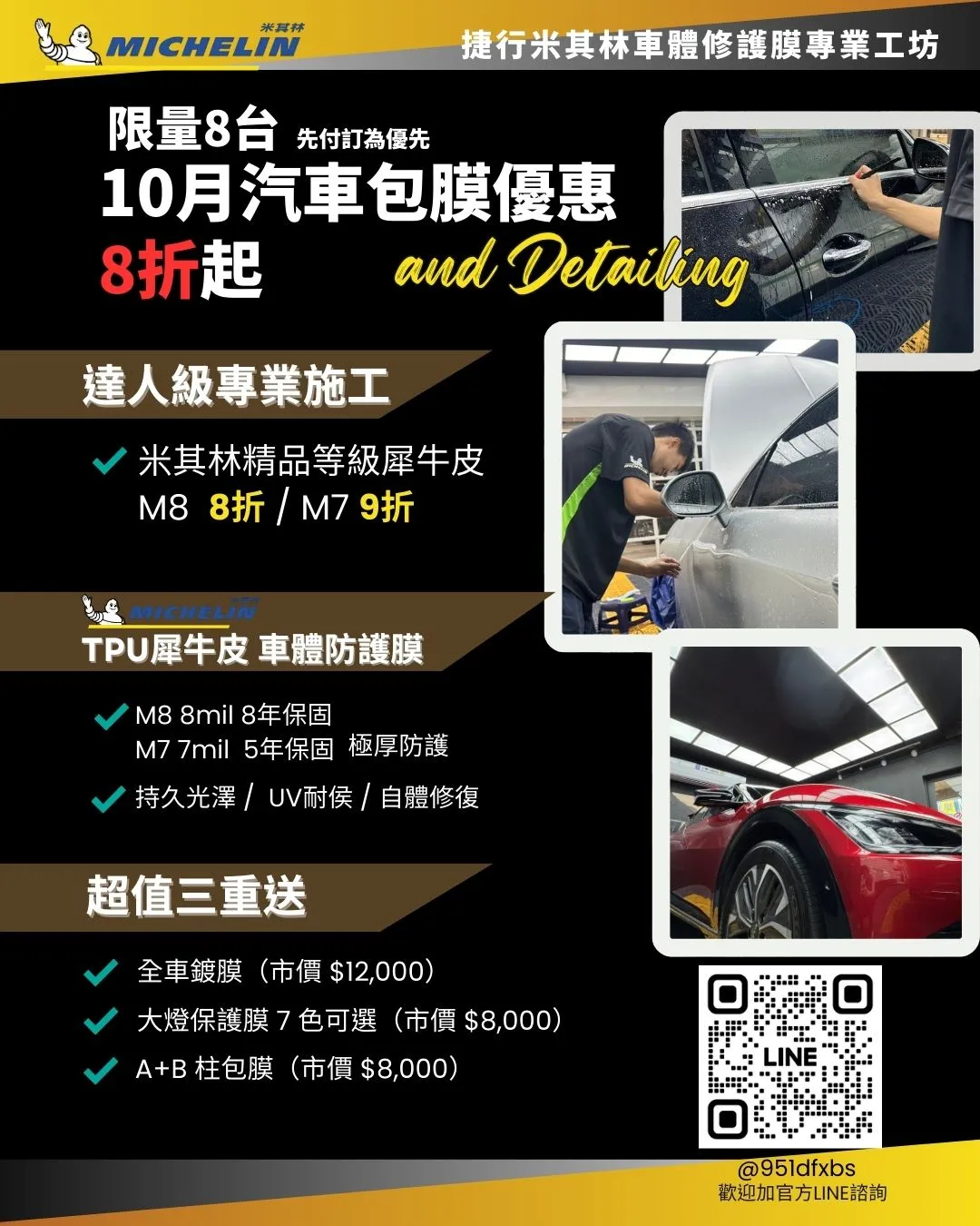#米其林車體防護膜 #全車包膜 #TPU犀牛皮 #汽車鍍膜 #台中汽車包膜 #捷行米其林 #車體保護 #十月優惠