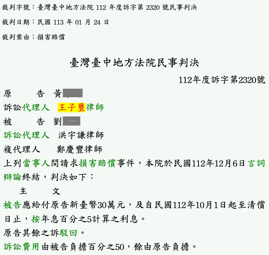 民事_黃○○_告訴求償30萬成功