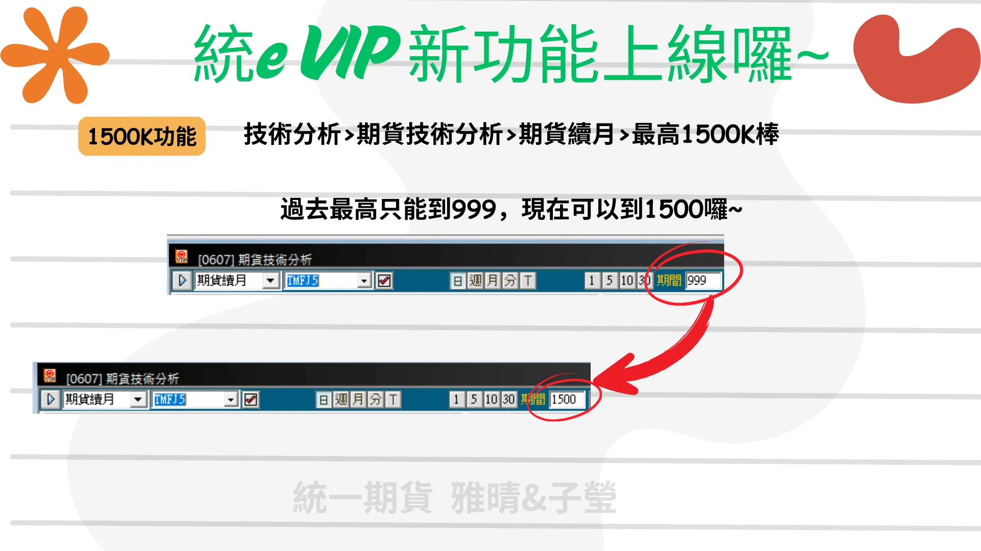 過去最多只能看999K棒,現在最高可到1500K棒,分析更完整!