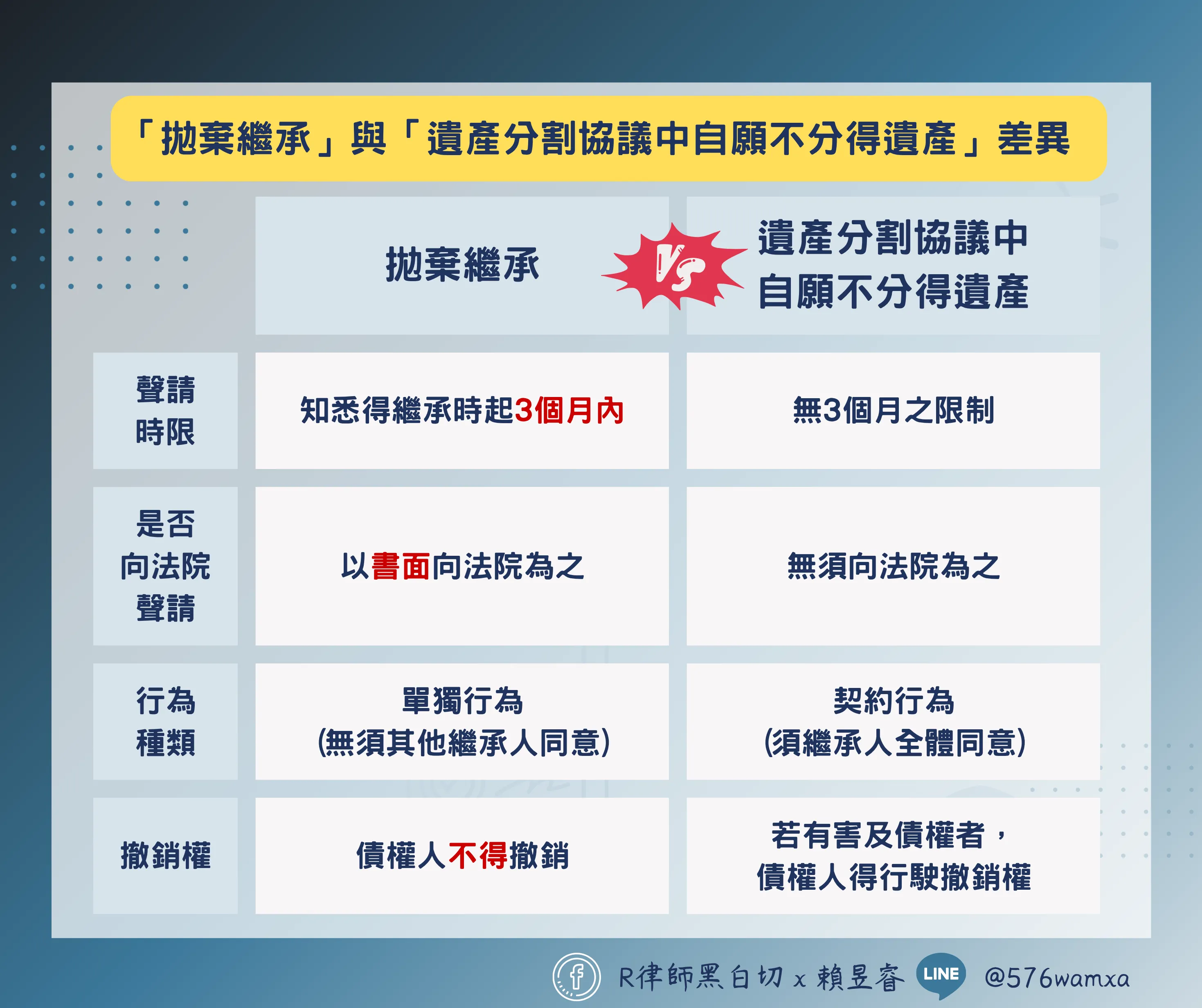 三、「拋棄繼承」與「遺產分割協議中自願不分得遺產」差異