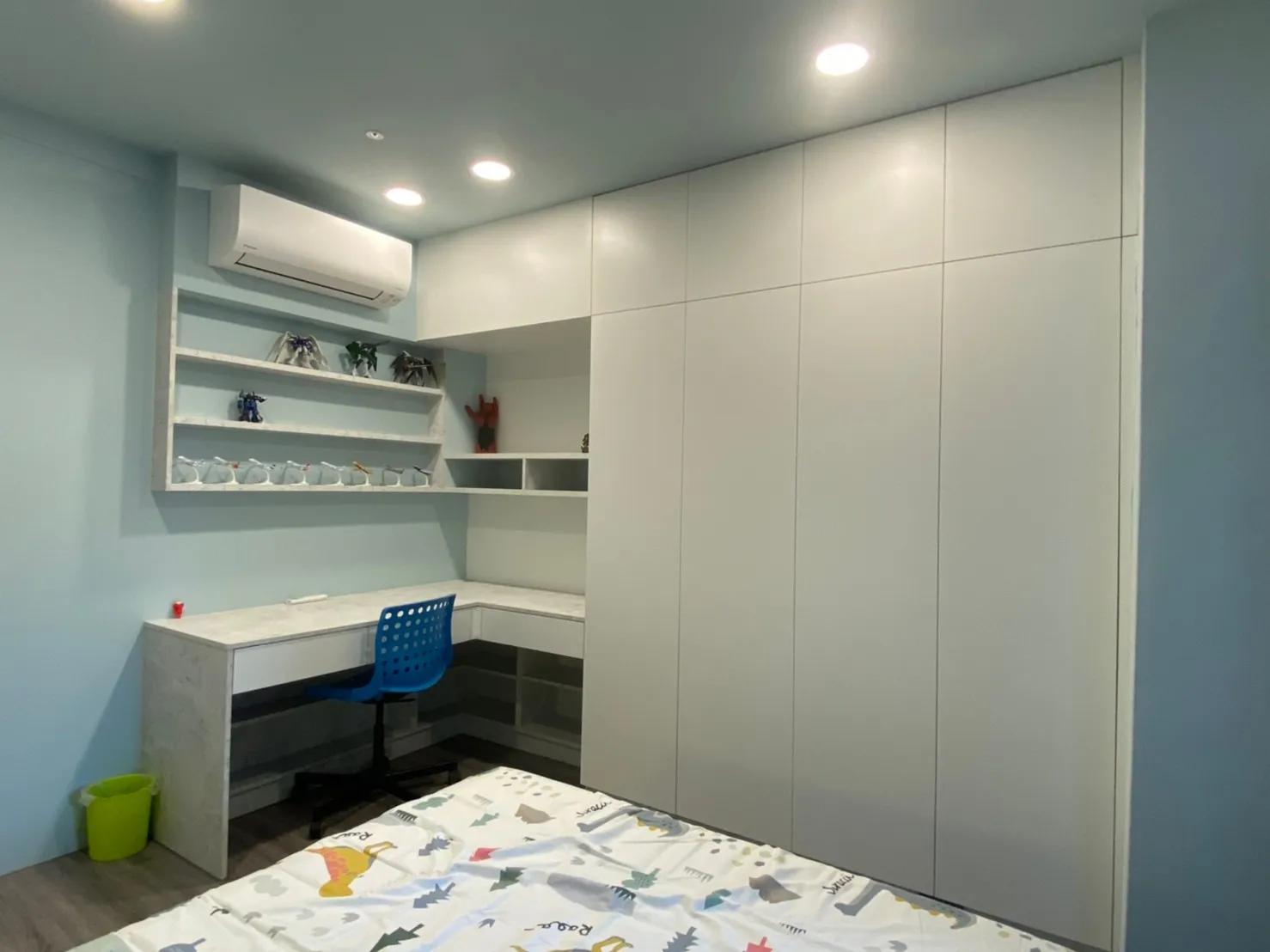 童趣床頭燈增添趣味,大容量衣櫃與書桌滿足收納與學習需求。