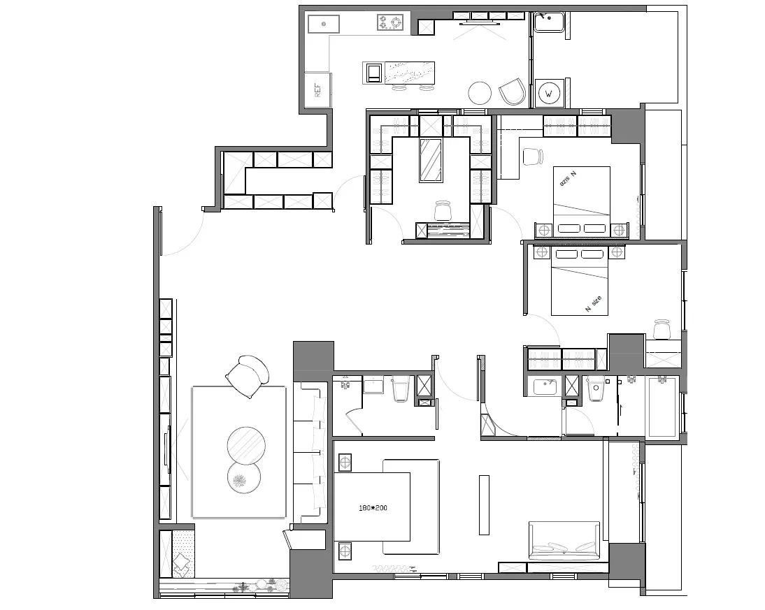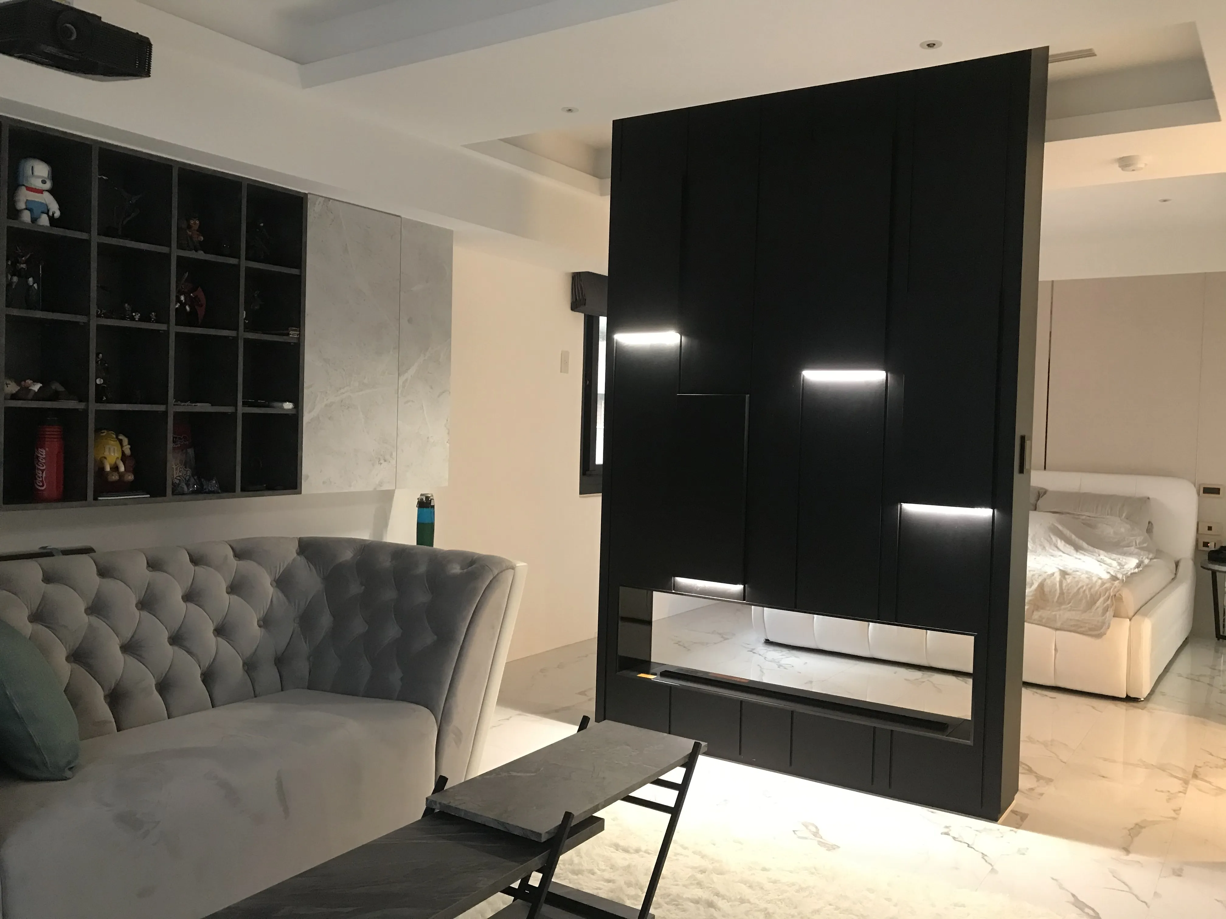 本案以 黑與白的強烈對比 為主軸,搭配俐落線條與多元材質,營造出兼具沉穩與時尚的居家氛圍。從客廳到衛浴,每個空間都透過光影與色彩的平衡,展現現代風的獨特魅力。