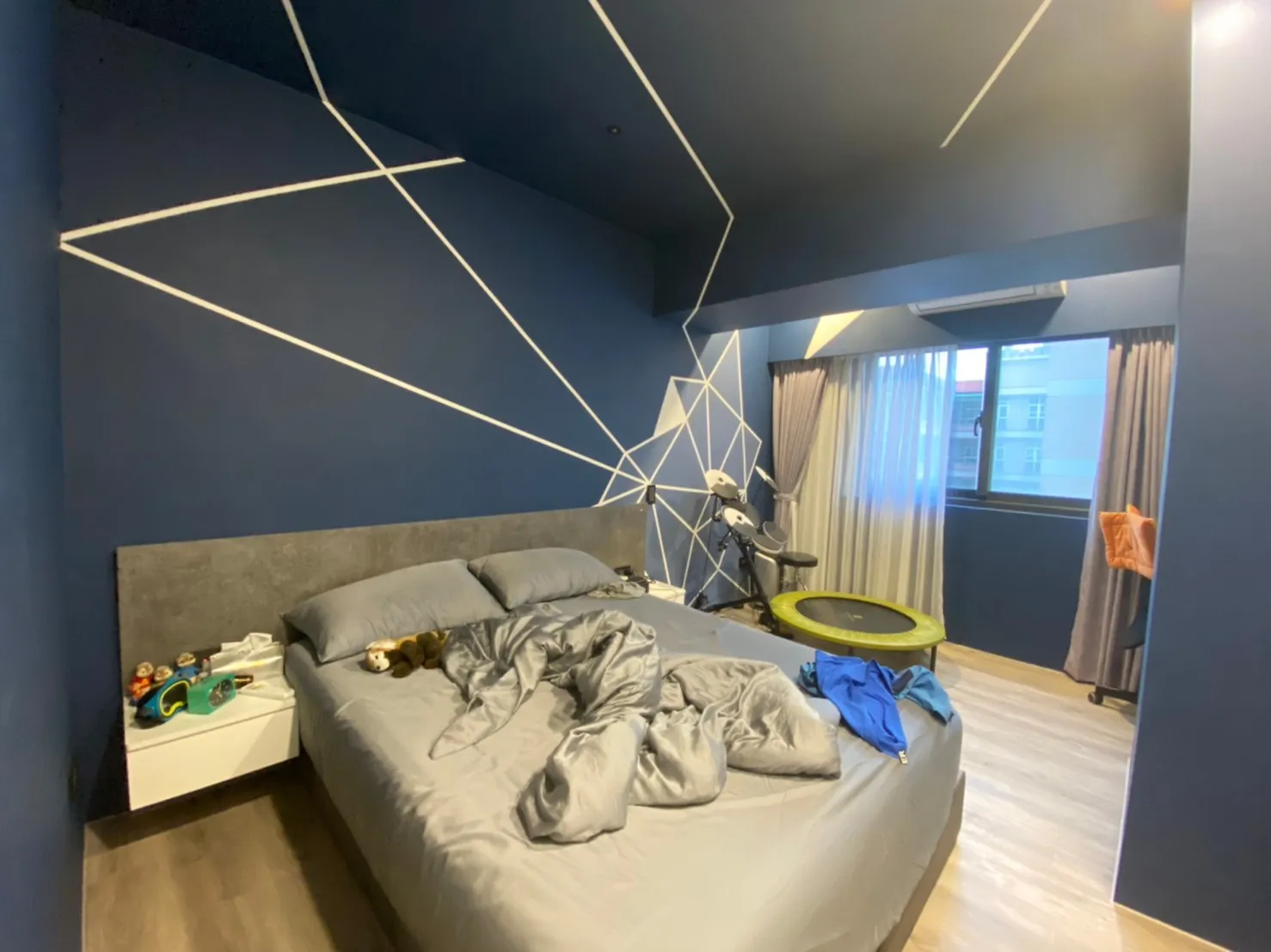 次臥房|深藍色幾何主題房