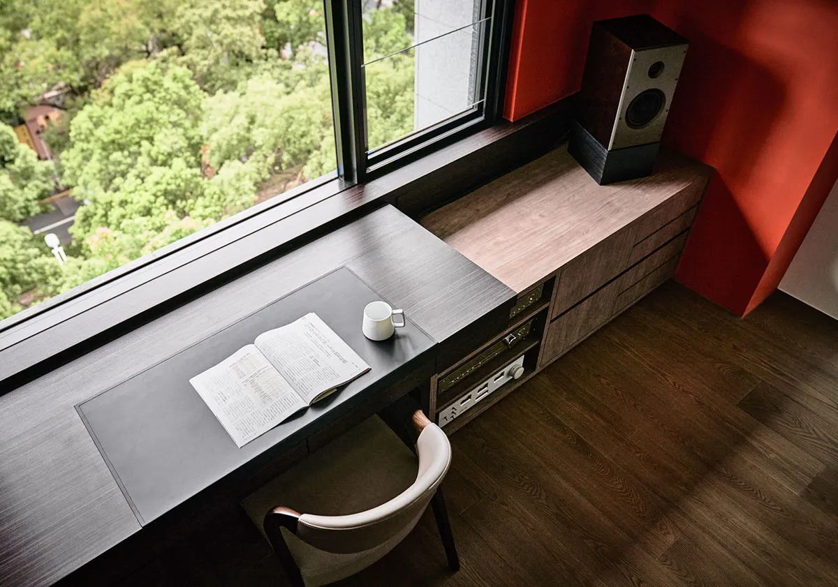 渡過人生數十載,無論心習、愛好,已然成為日日滋養,盼綿延為生活家景,有一處沏茶沉思、有一曲旋律揚升,設計師說道「屋主相當注重原有習慣,體現於物件尺度上,像是不希望改動盥洗臉盆尺寸、高度,甚至每一道門片開闔方式,我們不只要為居者保有一份熟悉感,更需納入未來時空,隨著時間展演,生命歷程愈年長時,還需思量安全條件,作為熟齡宅基石。」