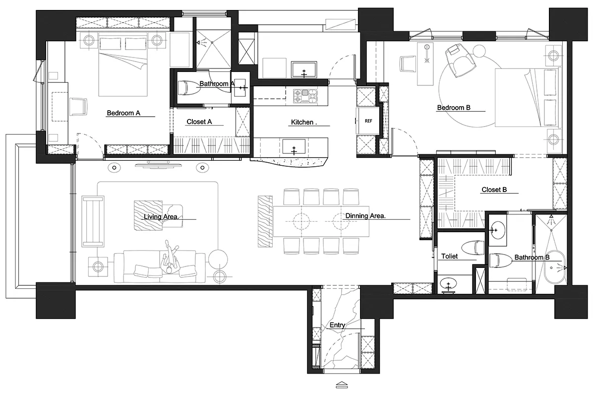 生命若是一趟行旅,走向熟齡則迎來無與倫比豐盛,步伐更為輕盈、心處波瀾不興,屋主曾久居美國,如今回台定居,展開夫妻倆人新旅程,委託予曾屢次推薦為友人打造屋宅的 十拾設計,期望將細膩手筆,以及對團隊的熟稔安心感,攬入家宅中。