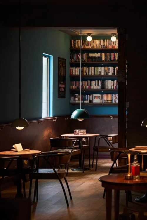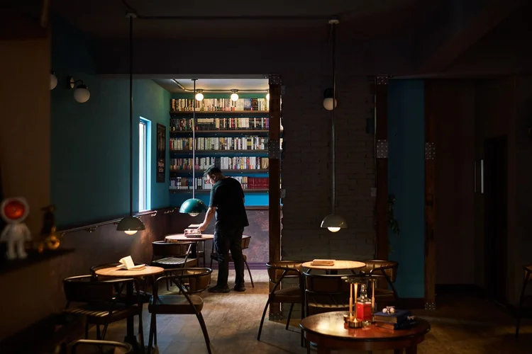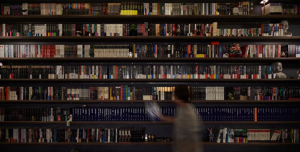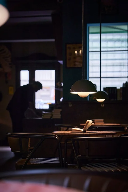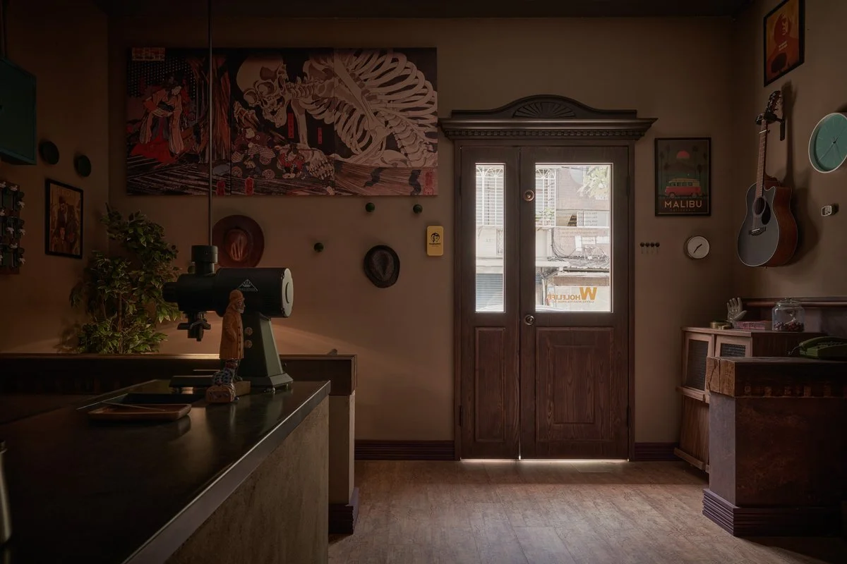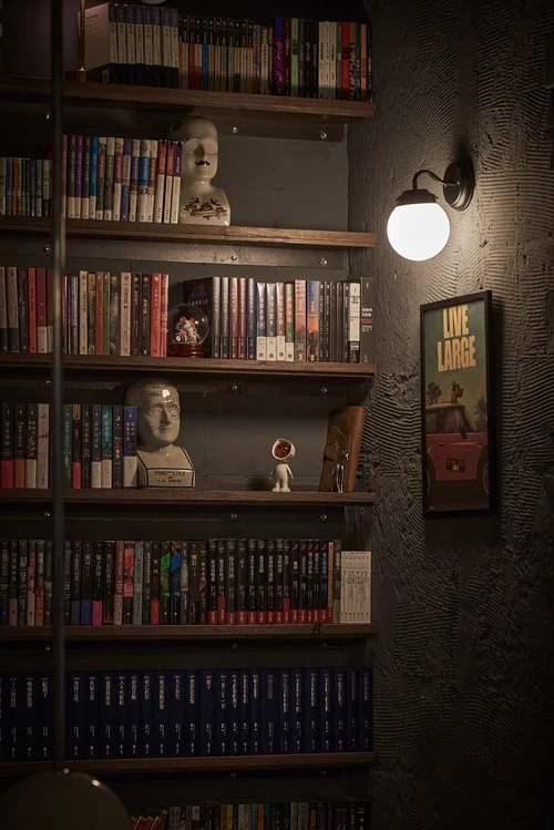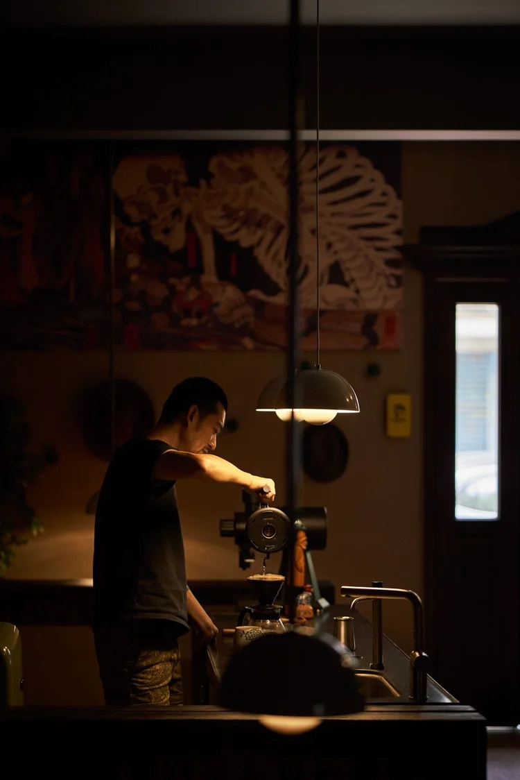 當你推開那扇沉穩內斂的木門,印入眼簾的盡是店主的珍稀收藏,伴隨著溫潤清雅的咖啡香,撫著歷經歲月的枕木年輪結構,復古懷舊的氛圍彷彿述說著時光長河留下的軌跡,心也慢慢隨著步伐沈澱下來;從櫃檯牆面延伸至屋內深處的書牆,展示著店主在生命旅程中的自我覺察與省思歷程,特意安排的書櫃動線設計和書籍的精密擺放方式也象徵著對於書籍作者和藏書的尊重。