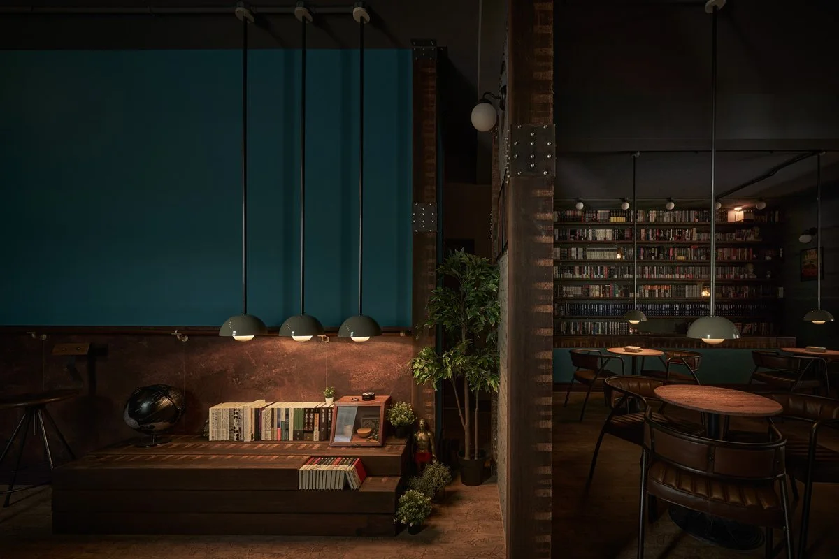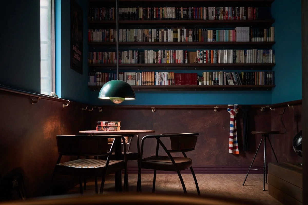 空間以溫暖而深邃的暖色調貫穿,富含底蘊的藍綠色搭配上溫潤的枕木原色,再加上美式復古座椅,是屬於與孩子難忘的記憶拼圖,更是譜寫出一種深切難解的情感連結,同時也表達了傳統父親在事業和家庭之間尋求平衡的願景,期許未來路程能成為一雙更溫暖踏實感的肩膀。此外,在整體空間裡,如月光般的懷舊吊燈巧妙地懸掛著,恰到好處的距離不僅傳遞了更柔和溫馨的氛圍,讓熱愛閱讀的書迷們能夠沉浸在黃金屋的世界中,毫不受干擾。