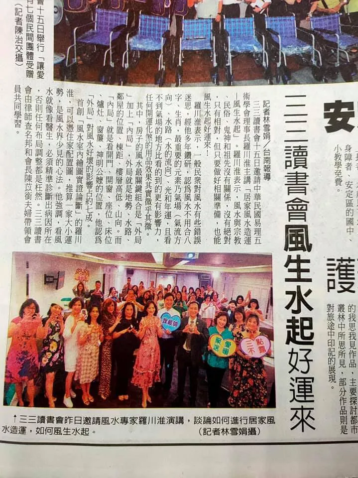 2020年7月,羅川淮老師應台南知名社團「三三讀書會」創會長邀請,跟所有的菁英成員分享居家風水真正的奧祕。
