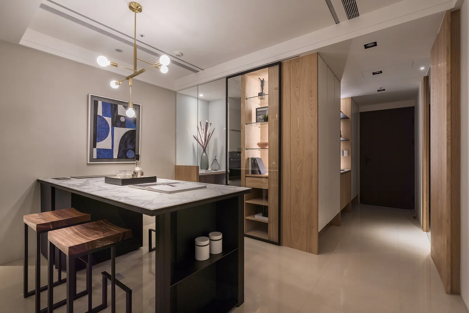 木質元素的原始肌理,柔化了石材的冷硬,營造出平衡的質感。