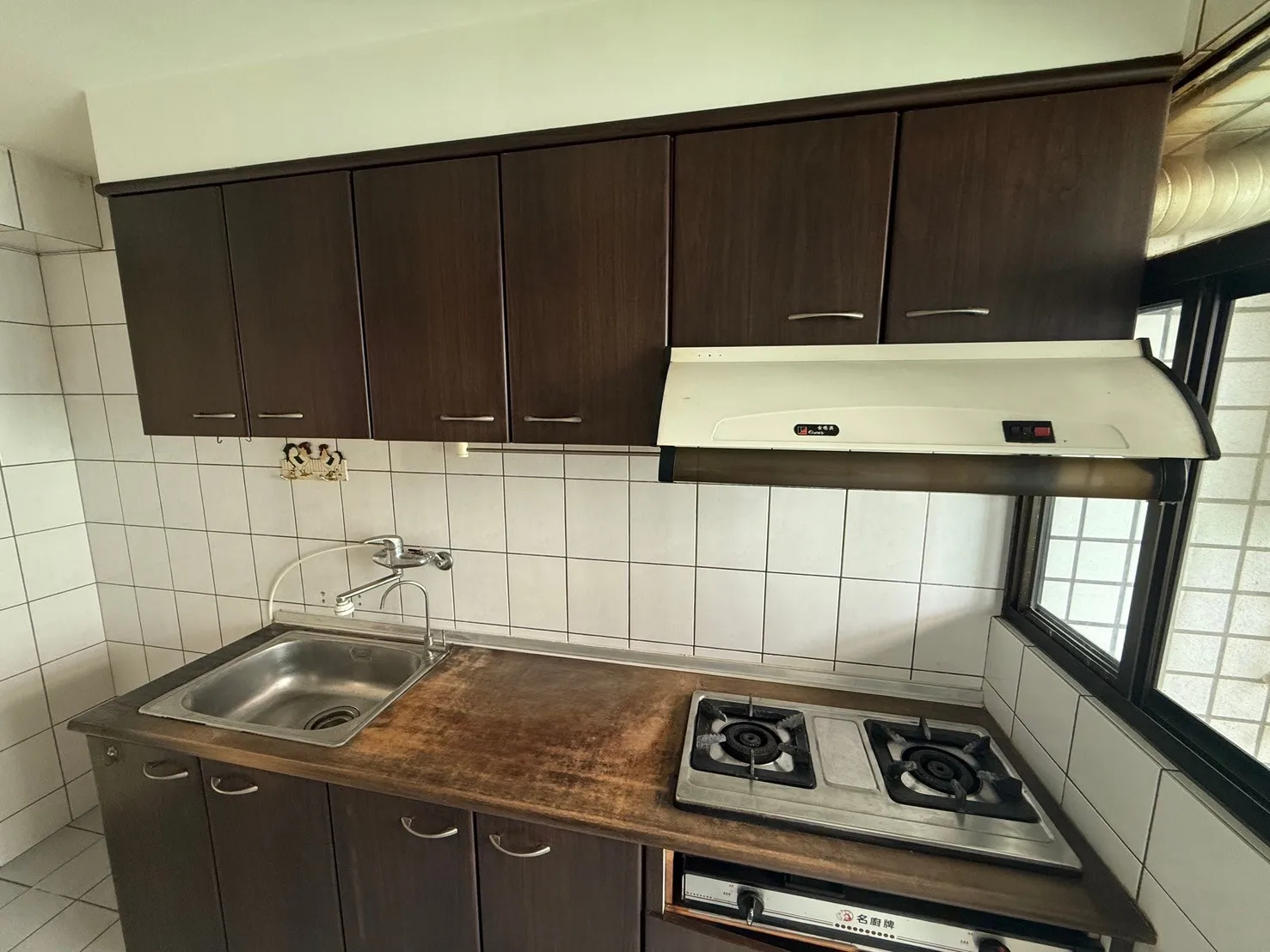 拆除舊有磁磚、換上湖水綠長條磚呼應整體空間風格,
