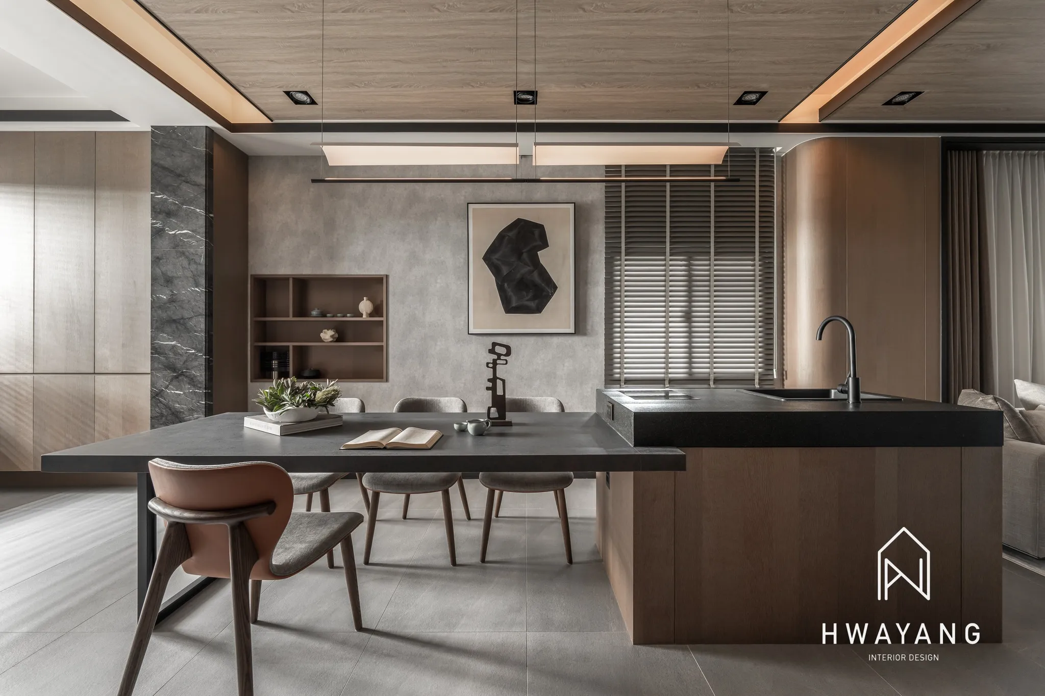 #華煬設計 #住宅設計 #南投設計 #現代灰韻 #退休宅邸 #大理石設計 #木皮應用 #輕奢住宅 #中島設計 #泡茶桌 #質感生活 #空間規劃 #室內設計 #生活美學